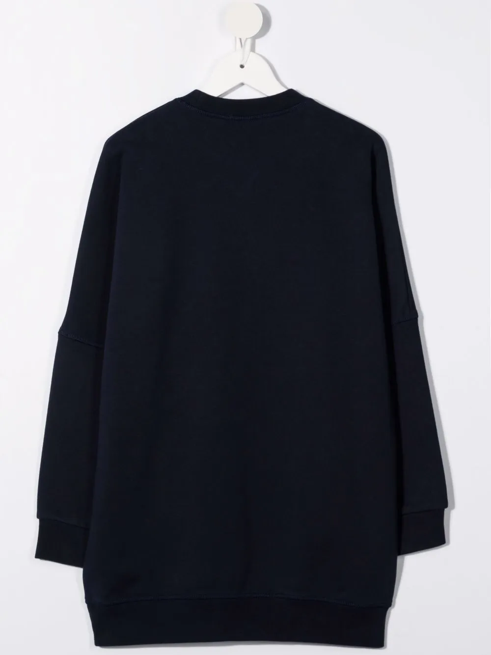 Логотип спереди, детали в рубчик, круглый вырез и длинные рукава.
