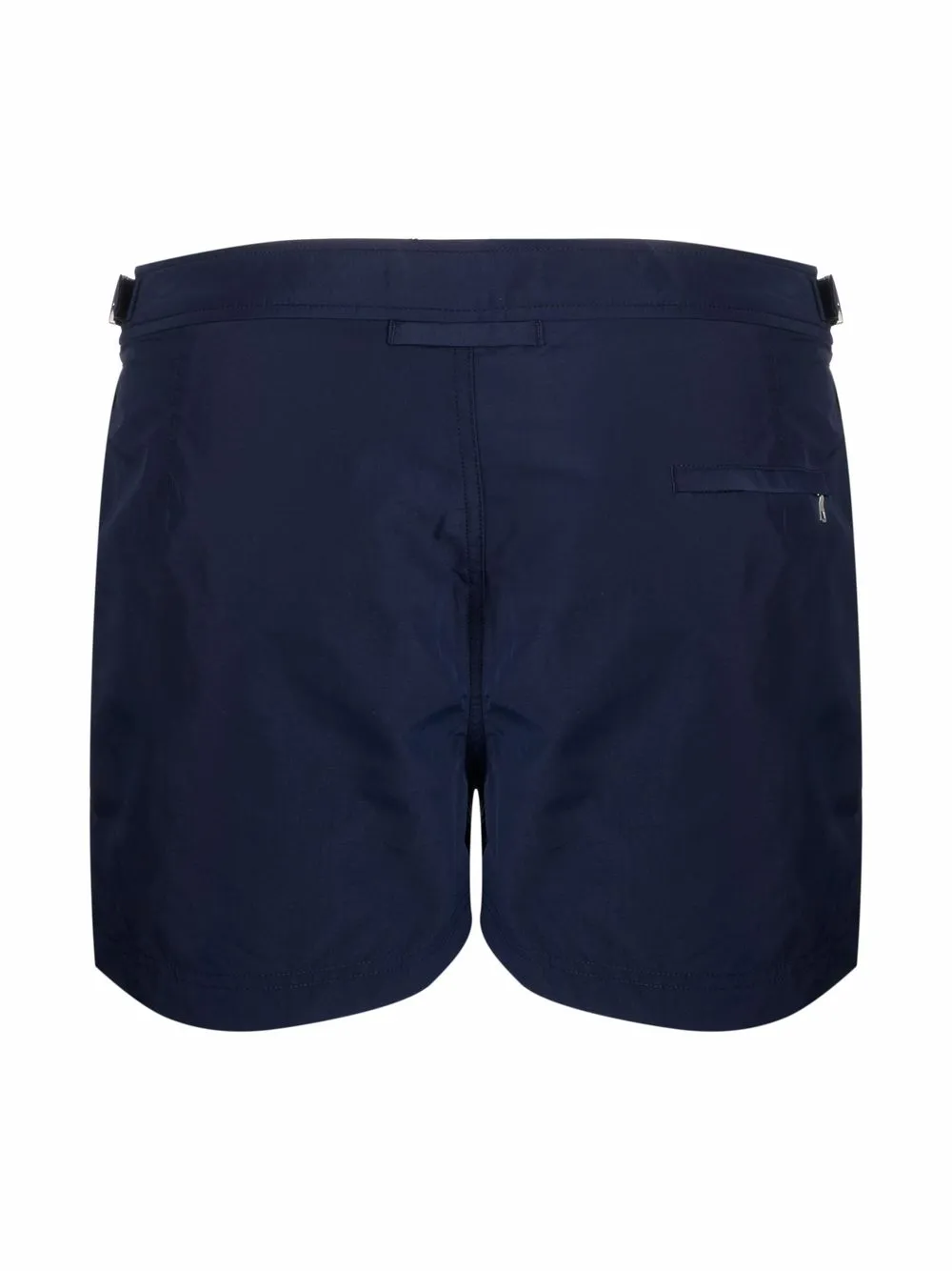 Темно-синий, декоративная пряжка, потайная застежка спереди, два прорезных кармана по бокам и карман на молнии сзади. Пожалуйста, примеряйте купальники и пляжные шорты только поверх собственного белья.