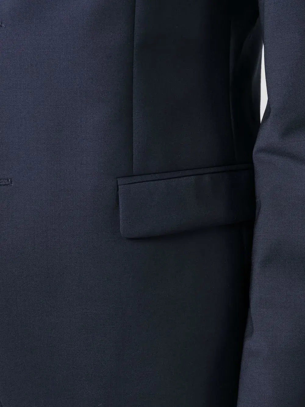 Зазубренные лацканы, застежка на пуговицах спереди, прорезной карман на груди, два передних кармана с клапанами, длинные рукава, два передних кармана с клапанами и без шлиц.