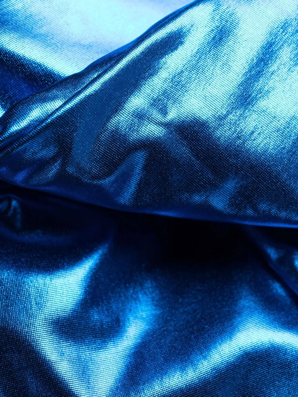 Эффект металлик, эластичный пояс и манжеты со штрипками. Цвет: синий.
