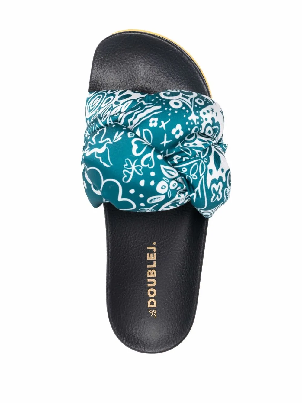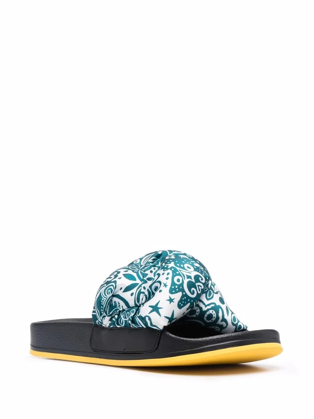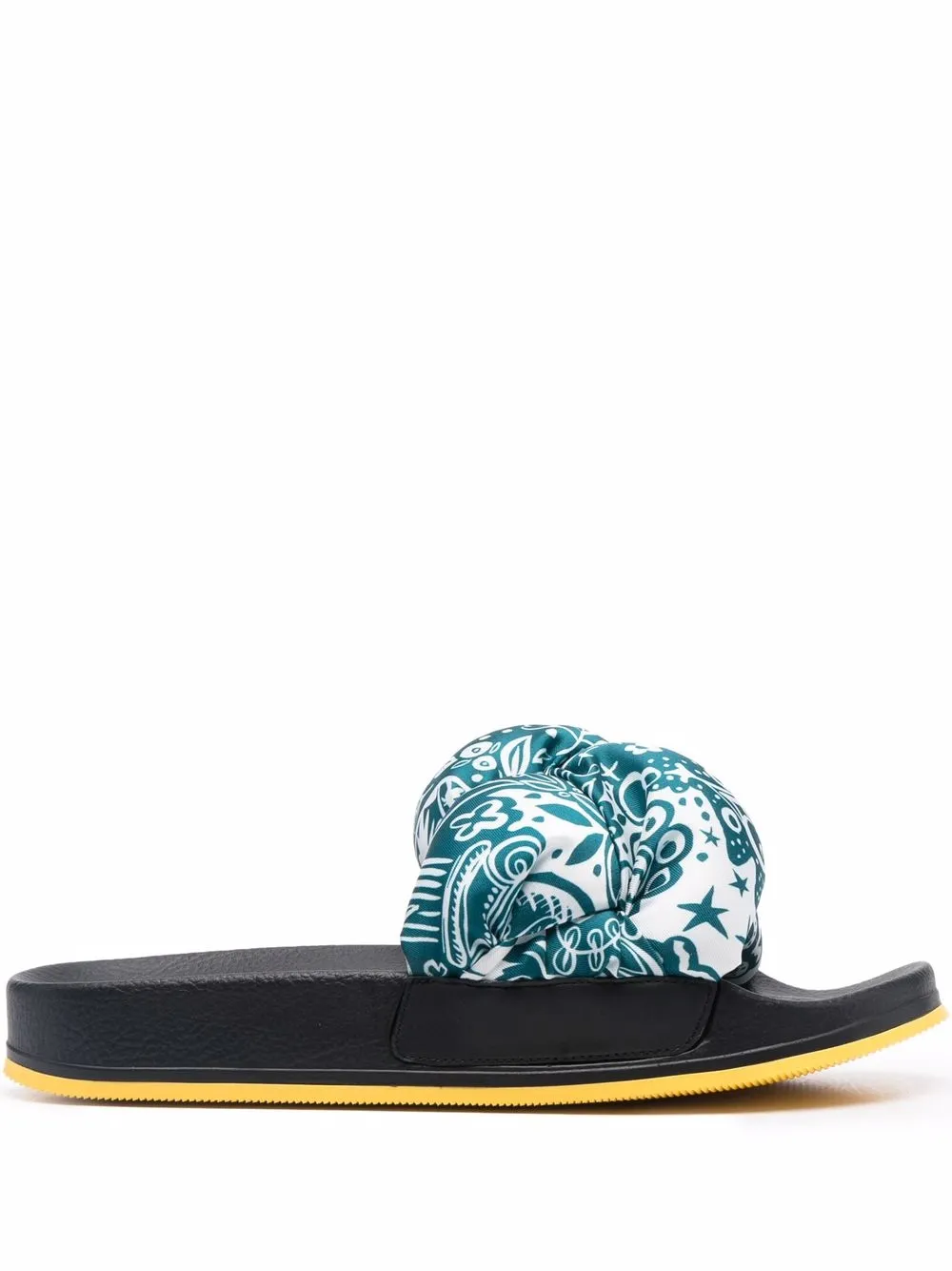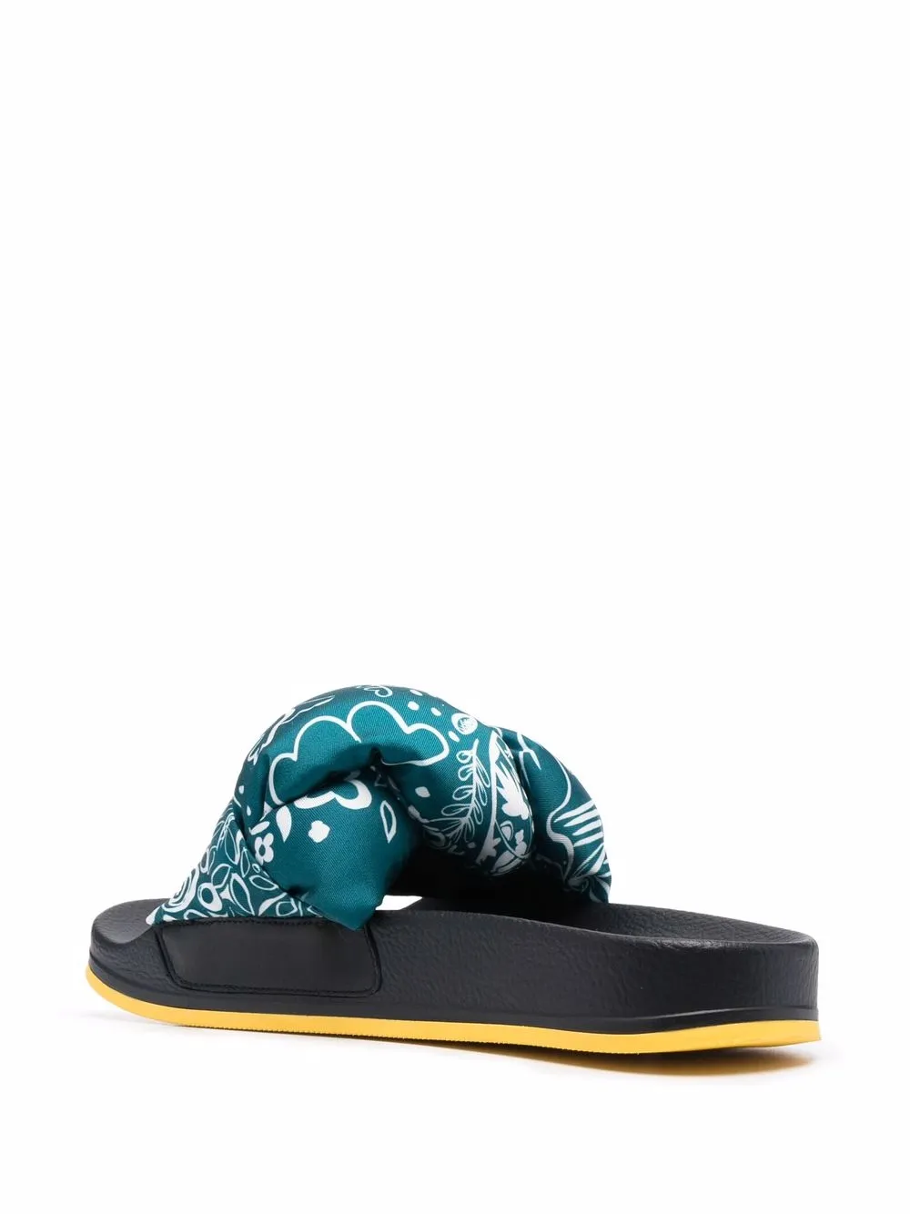 Принт пейсли, открытый носок и плоская подошва. Цвет: синий.