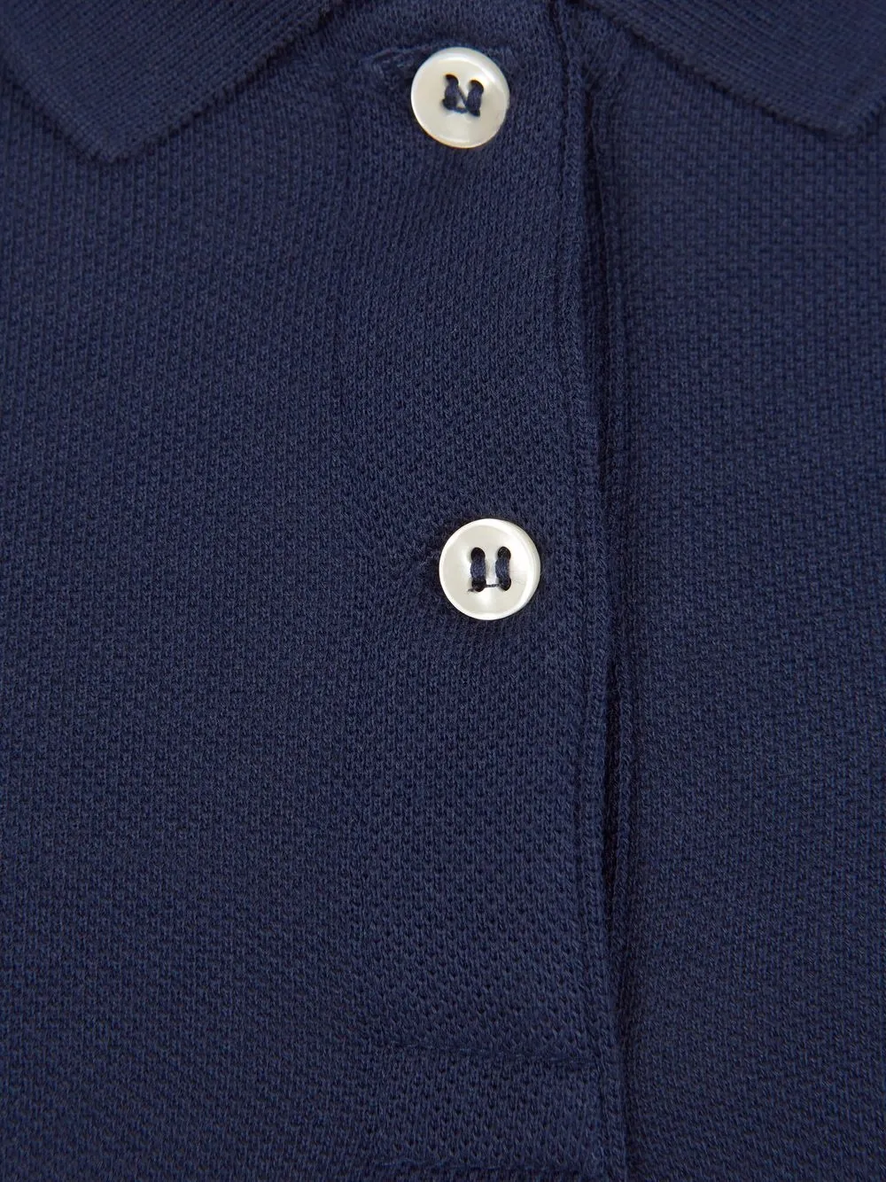 Вышитый логотип на груди, нагрудный накладной карман, воротник поло, короткие рукава и прямой подол.