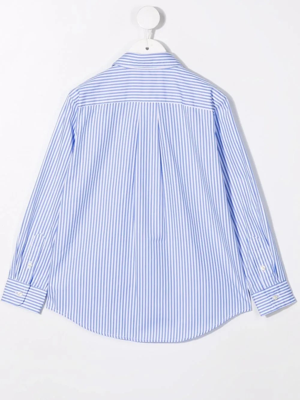 Узор в полоску, знаковый логотип Big Pony, классический воротник, застежка на пуговицах спереди, длинные рукава и прямой подол. Цвет: синий.