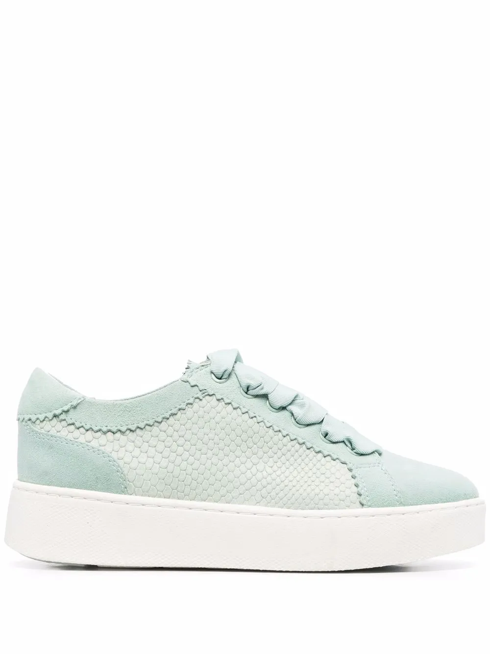 Отделка из замши, эффект змеиной кожи, закругленный носок, шнуровка спереди, кожаная стелька с логотипом и резиновая подошва. Цвет: синий.