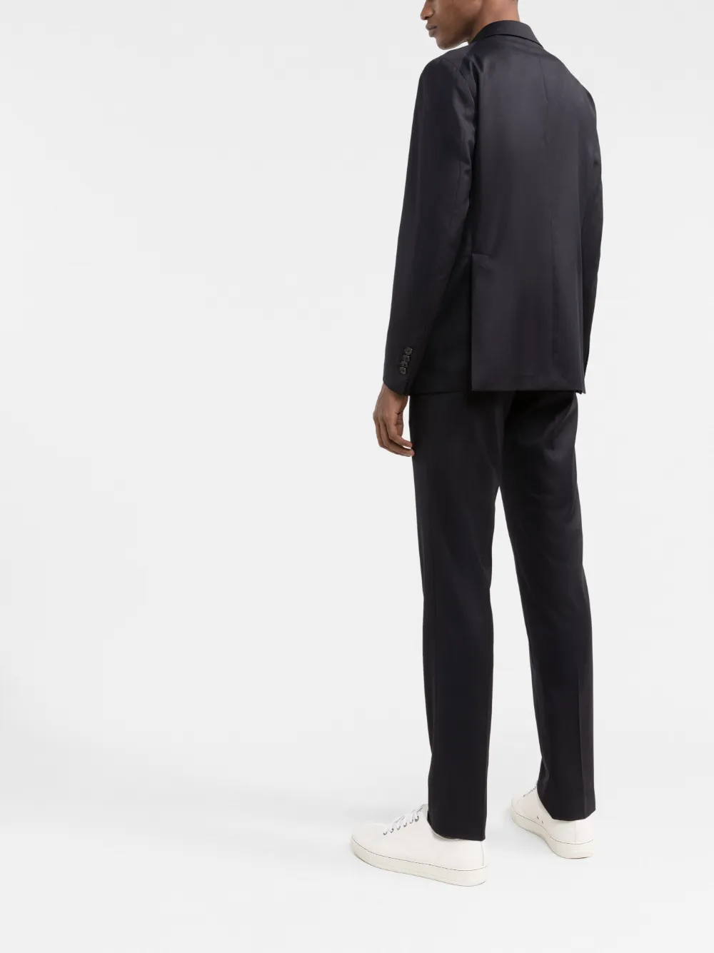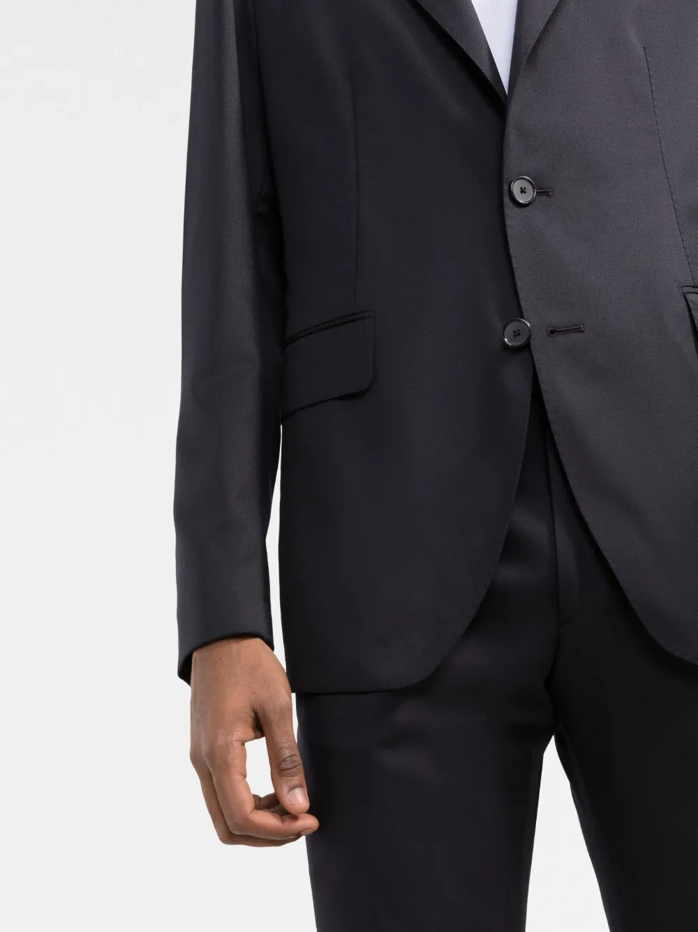 Подробнее о товаре: Темно-синий, необработанная шерсть, декоративная брошь, зазубренные лацканы, застежка на пуговицах спереди, длинные рукава, манжеты на пуговицах, прорезной карман на груди, два кармана с клапанами по бокам, две боковые шлицы сзади, стрелки, петли для ремня, смещенная застежка на пуговицах спереди, прямой крой, два вшитых кармана по бокам, два прорезных кармана на пуговицах сзади и прямой подол.