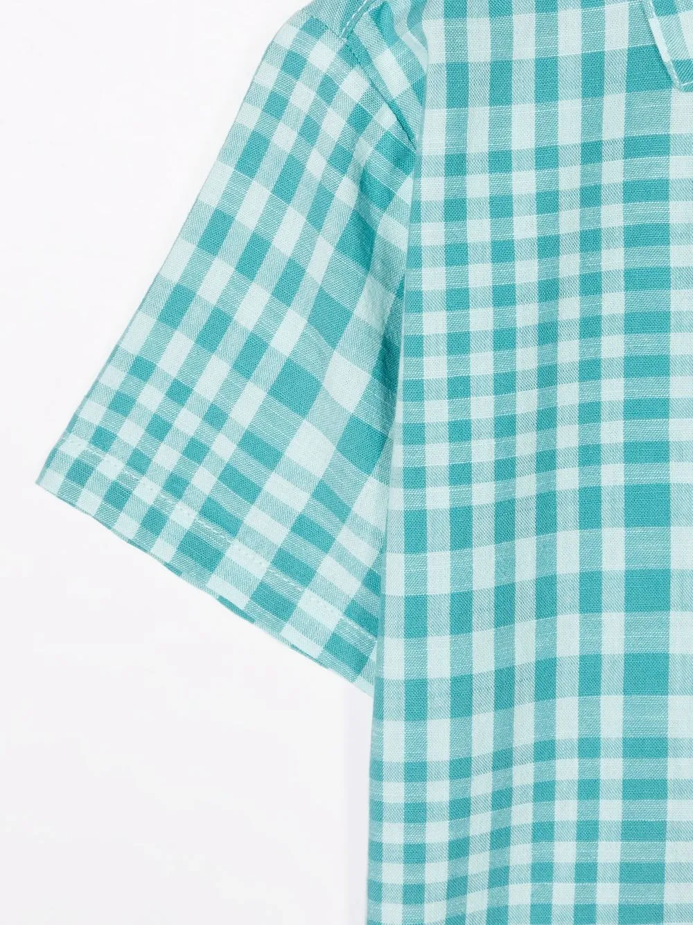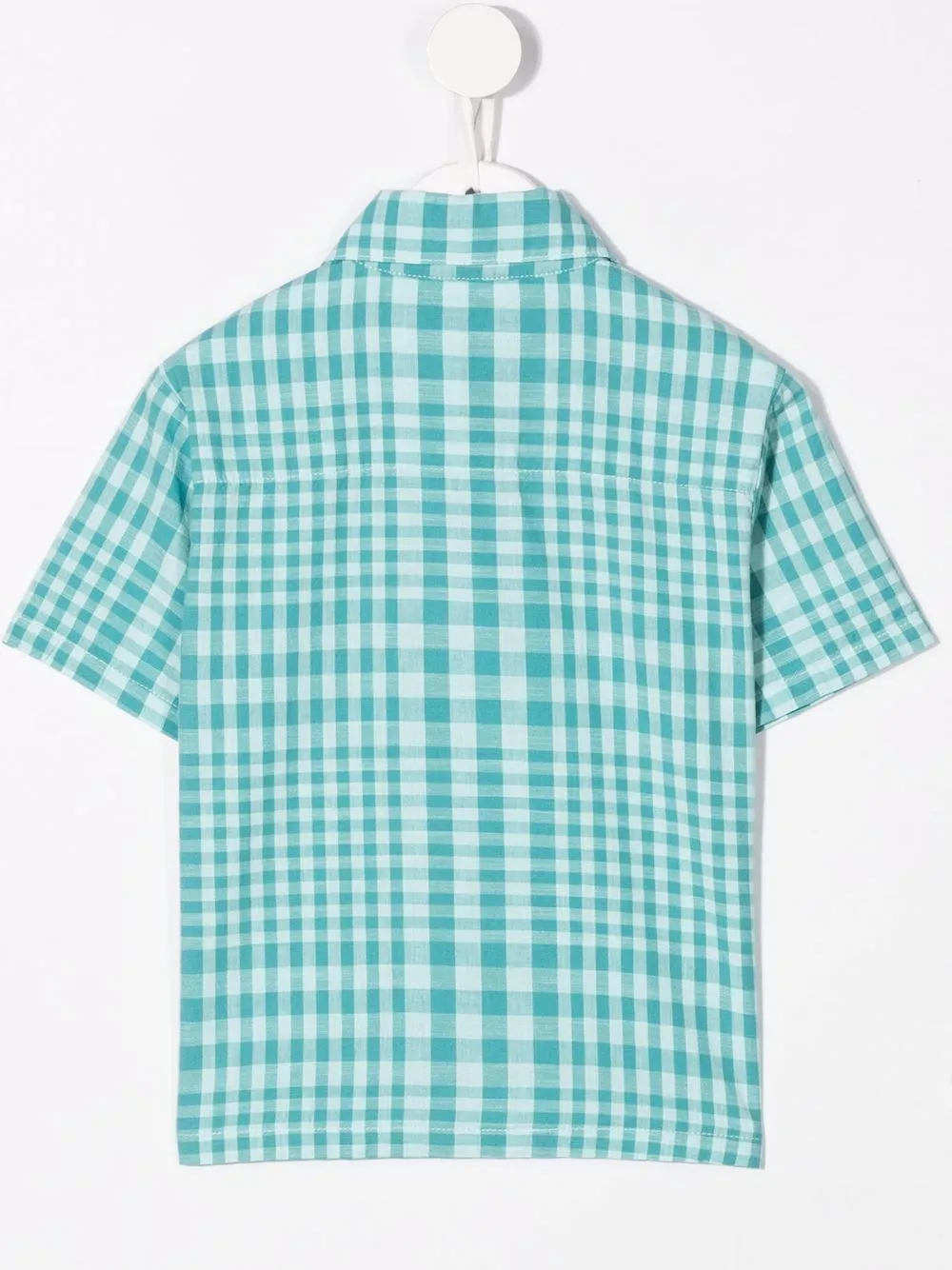 Принт в клетку, классический воротник, короткие рукава и застежка на пуговицы. Цвет: синий.