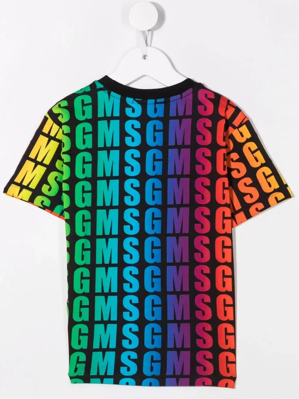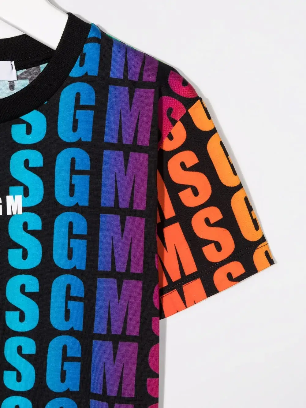 Градиентный эффект, сплошной принт с логотипом, круглый вырез, короткие рукава и прямой подол. Цвет: разноцветный.