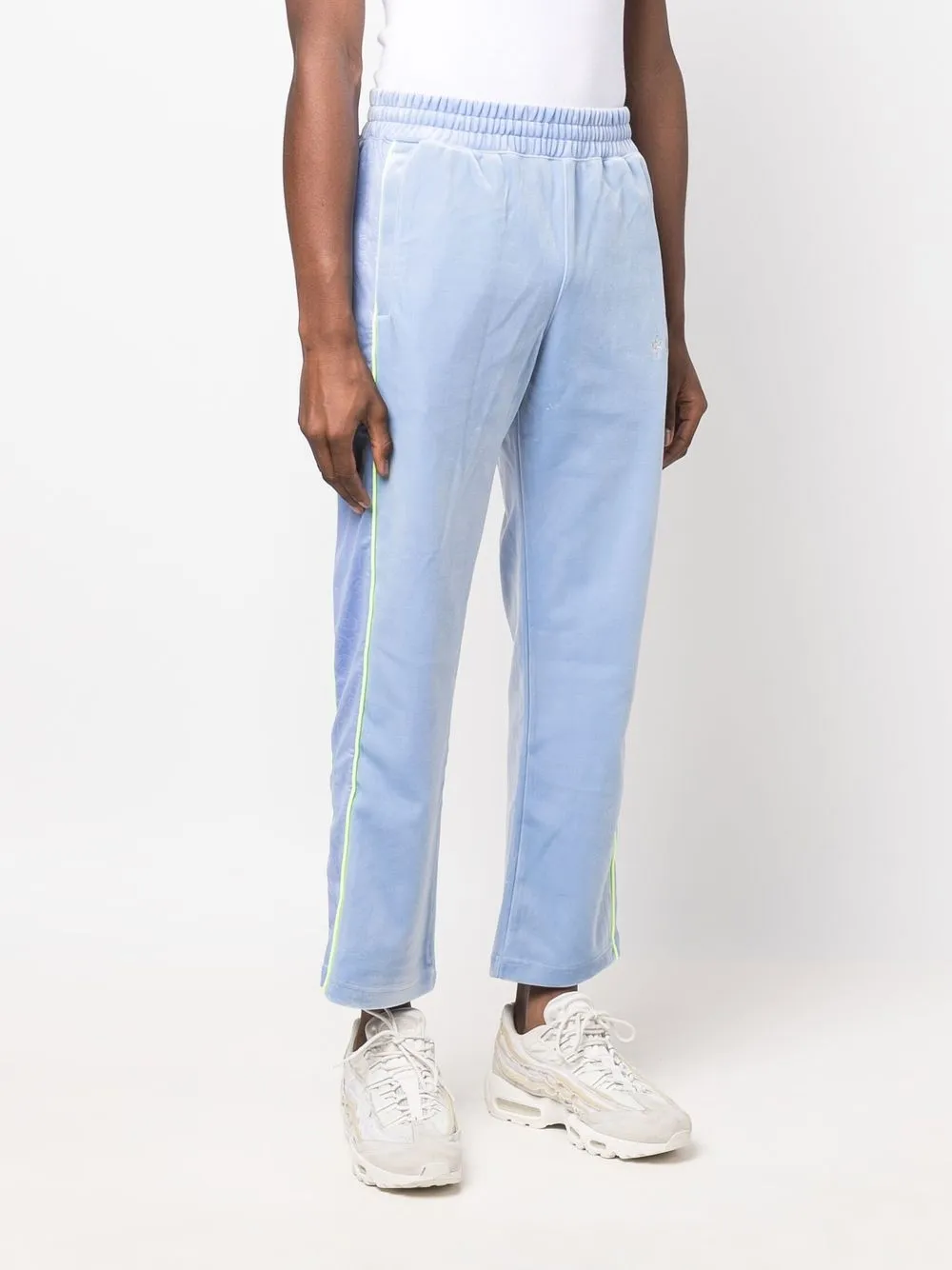 Вышитый логотип спереди, полоска сбоку, логотип сбоку, эластичный пояс, укороченная длина и прямой крой.