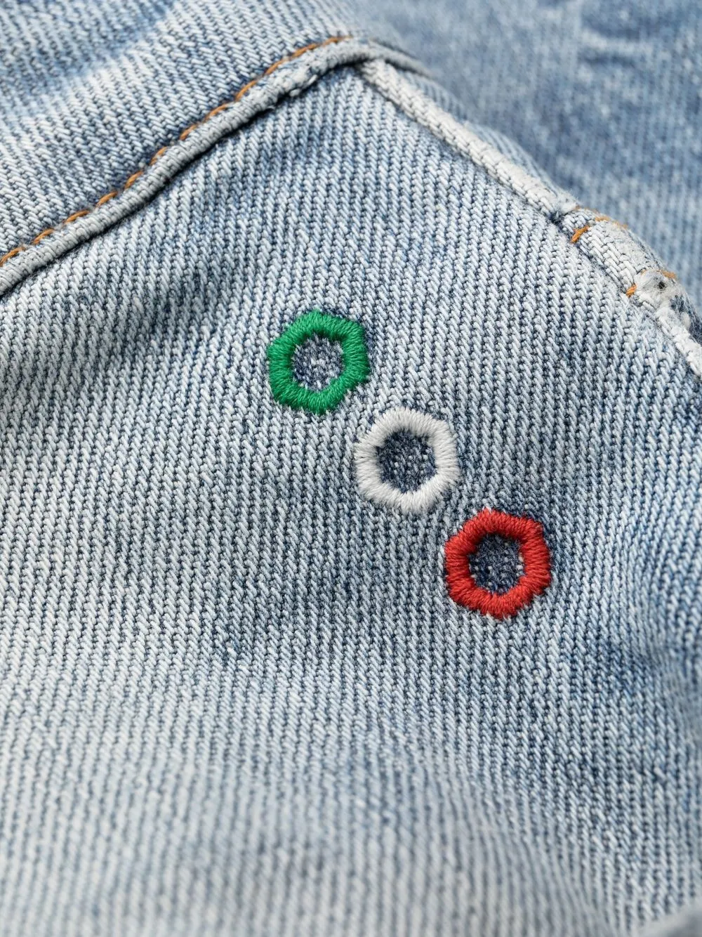 Нашивка с логотипом сзади, эффект потертости, петли для ремня, застежка на молнии и пуговице спереди и классическая пятикарманная модель.