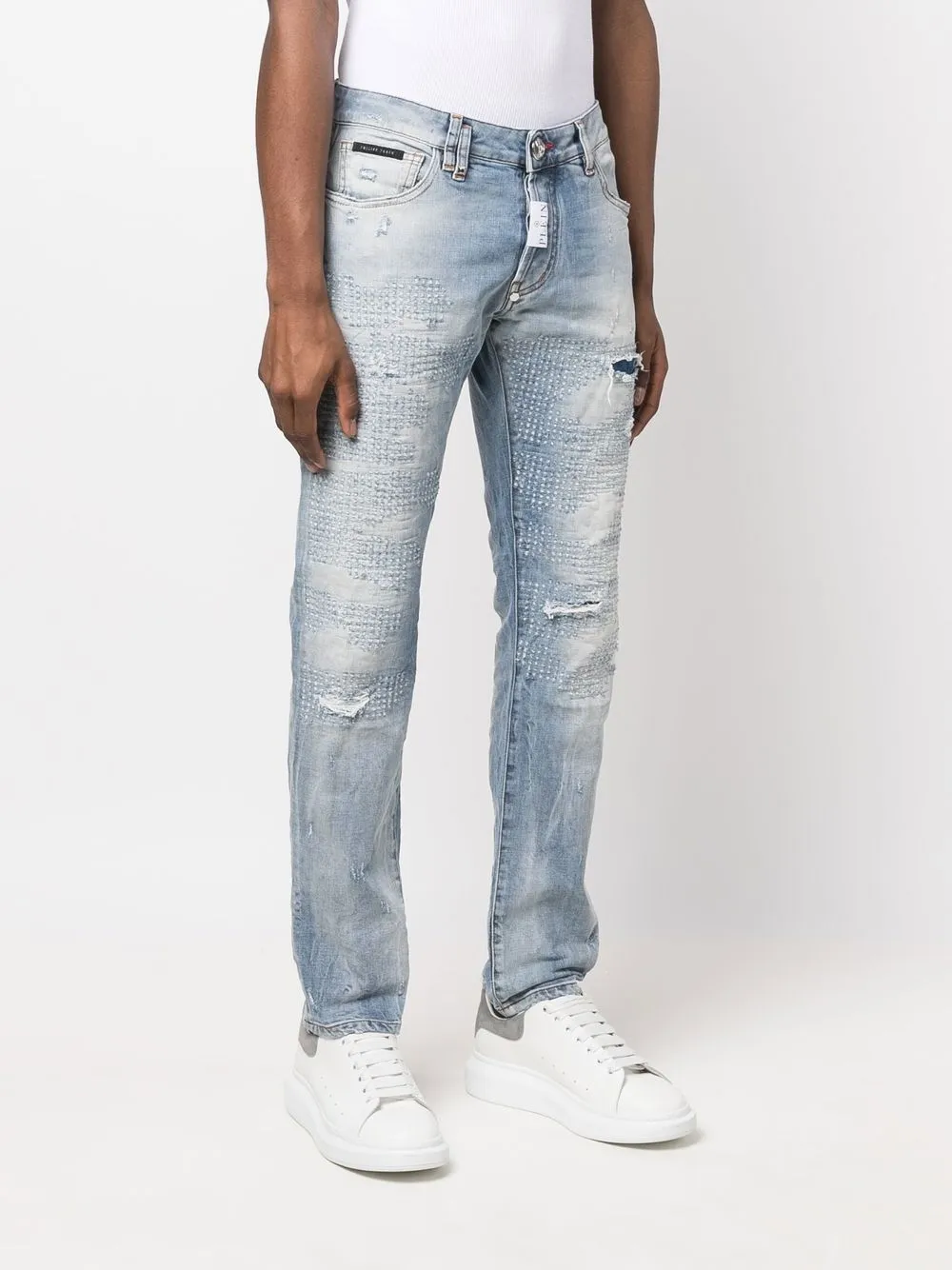 Джинсы Premium с эффектом потертости Philipp Plein, синий 45 000₽