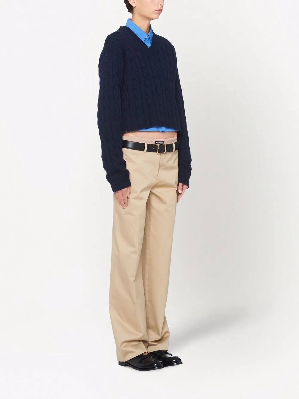 Кашемировый джемпер фактурной вязки MIU MIU, синий
