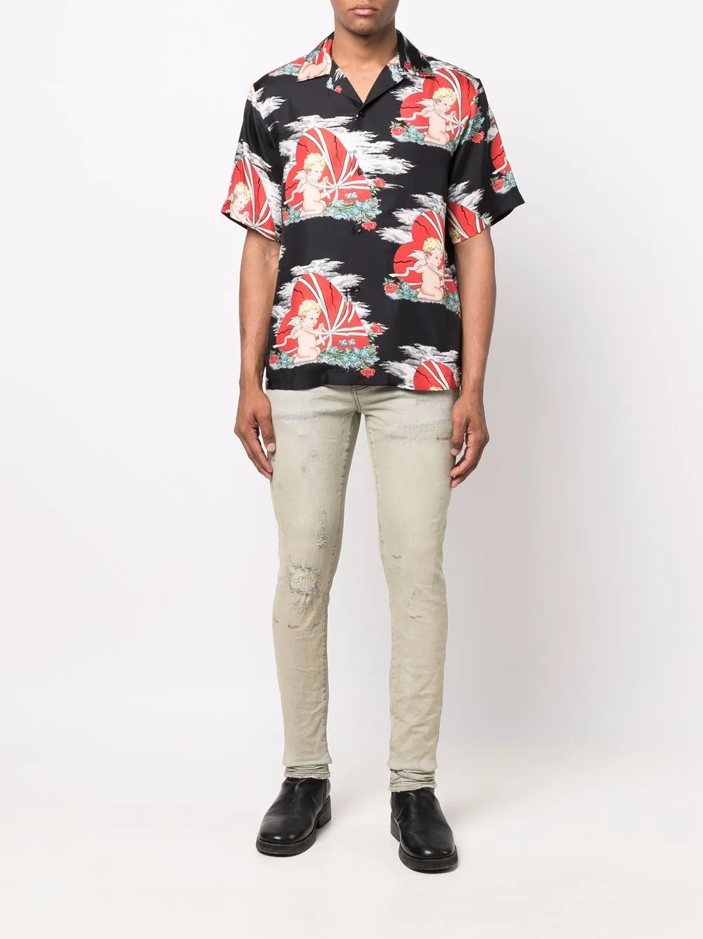 Искусственно состаренное покрытие, обработанный деним, петли для ремня, ширинка на пуговицах, классическая пятикарманная модель и облегающий крой.