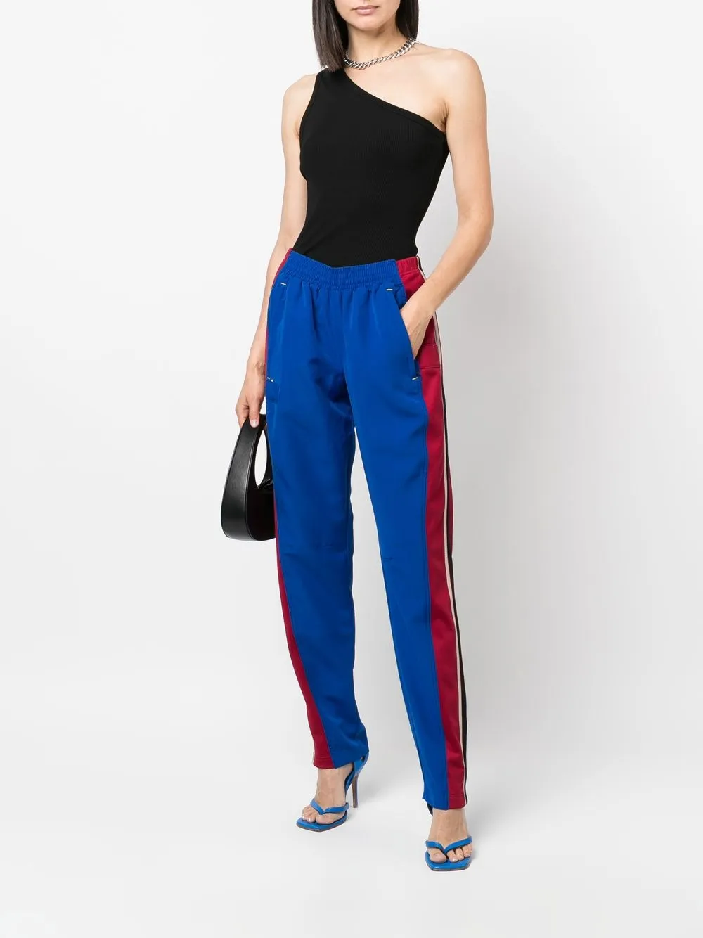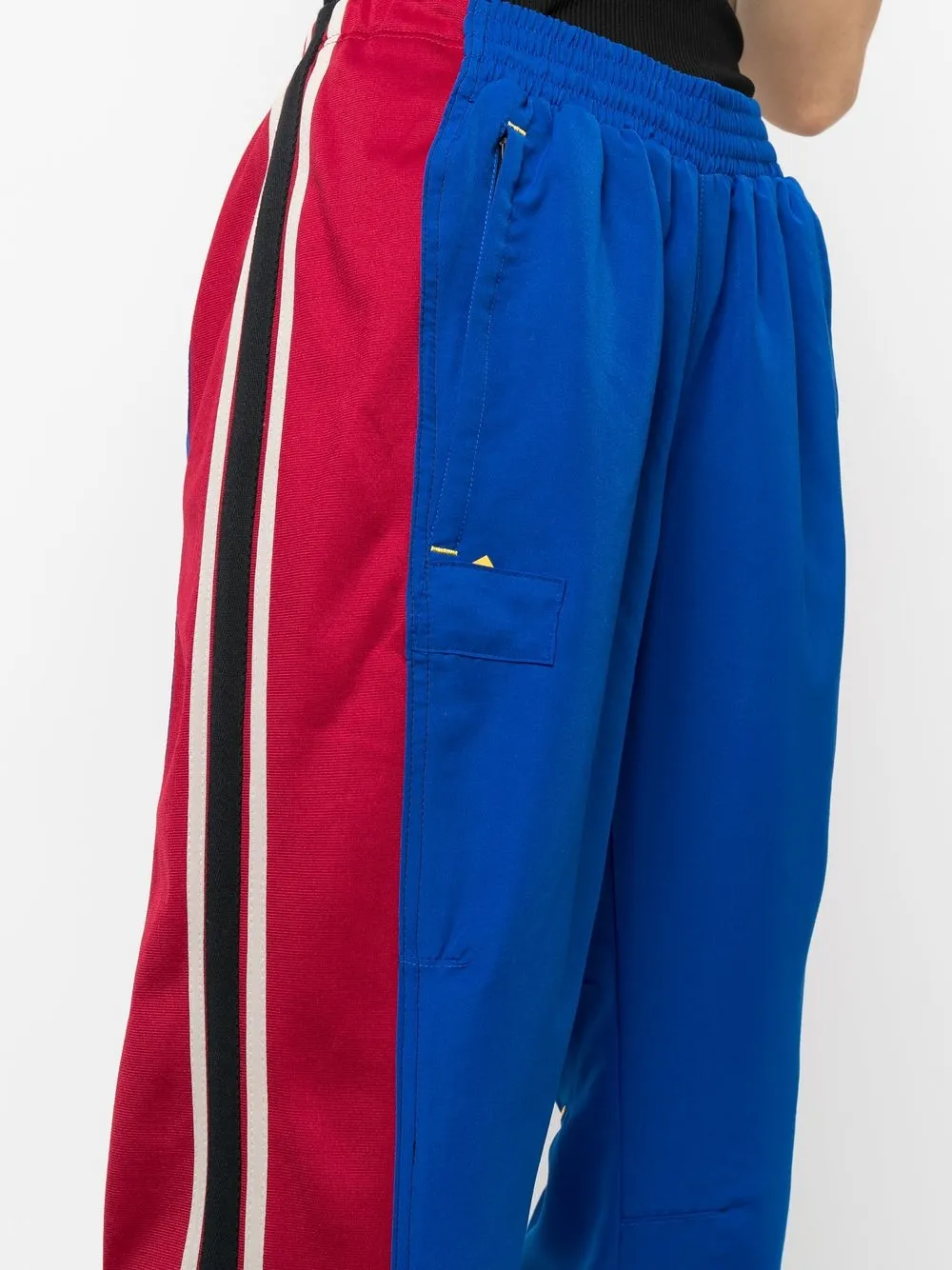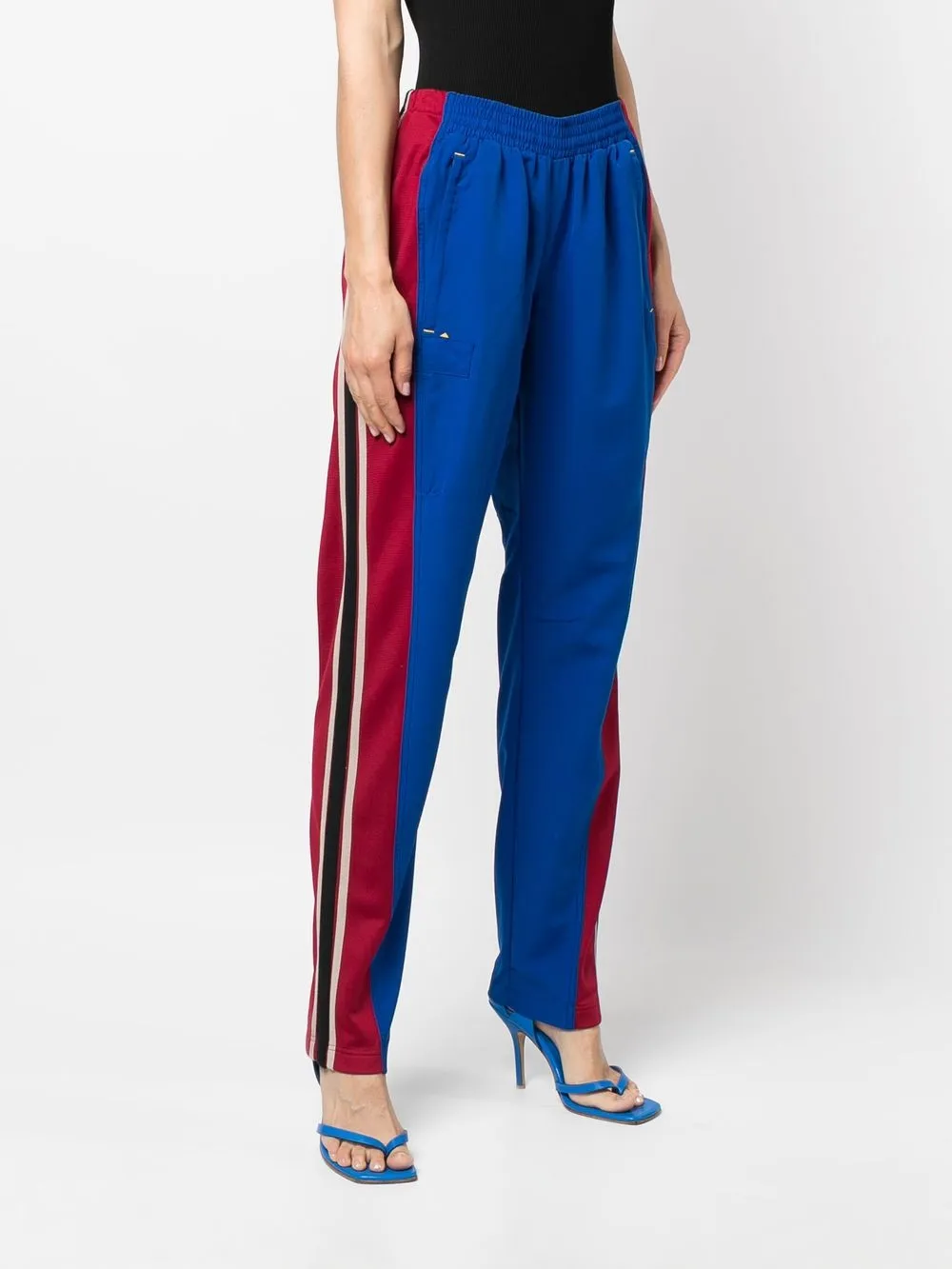 Синий/красный/черный вставки полоска сбоку средняя посадка зауженный крой эластичный пояс прорезные карманы по бокам Эта вещь изготовлена из переработанных материалов, поэтому ее внешний вид может незначительно отличаться от фотографий.