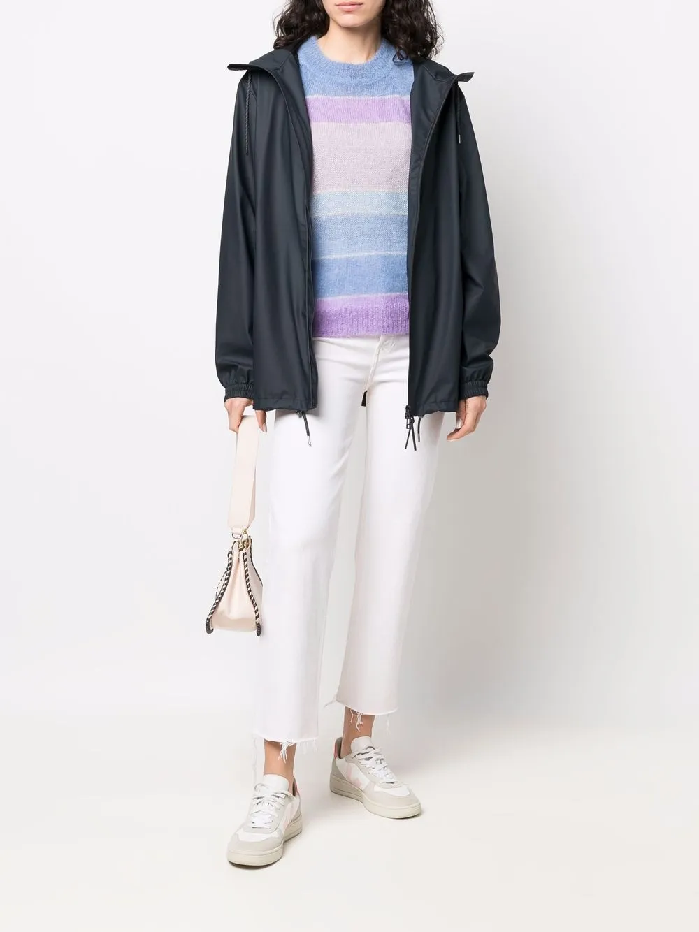 Подробнее о товаре: Темно-синий, водонепроницаемый материал, ветронепроницаемый материал, затягивающийся на шнурок капюшон, двусторонняя молния спереди, длинные рукава, эластичные манжеты, штормовая заслонка, два кармана по бокам и подол с кулиской. Это унисекс-модель. Обратите внимание, что для нее используется мужская размерная сетка. Узнать больше о том, какие товары получают отметку «Ответственный выбор», можно из материала «Как мы оцениваем экологичность и этичность».