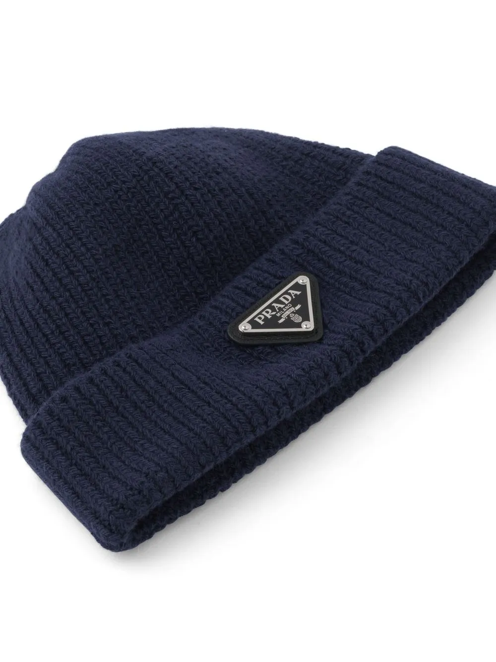 Кашемировая шапка бини с логотипом Prada, синий 55 052₽
