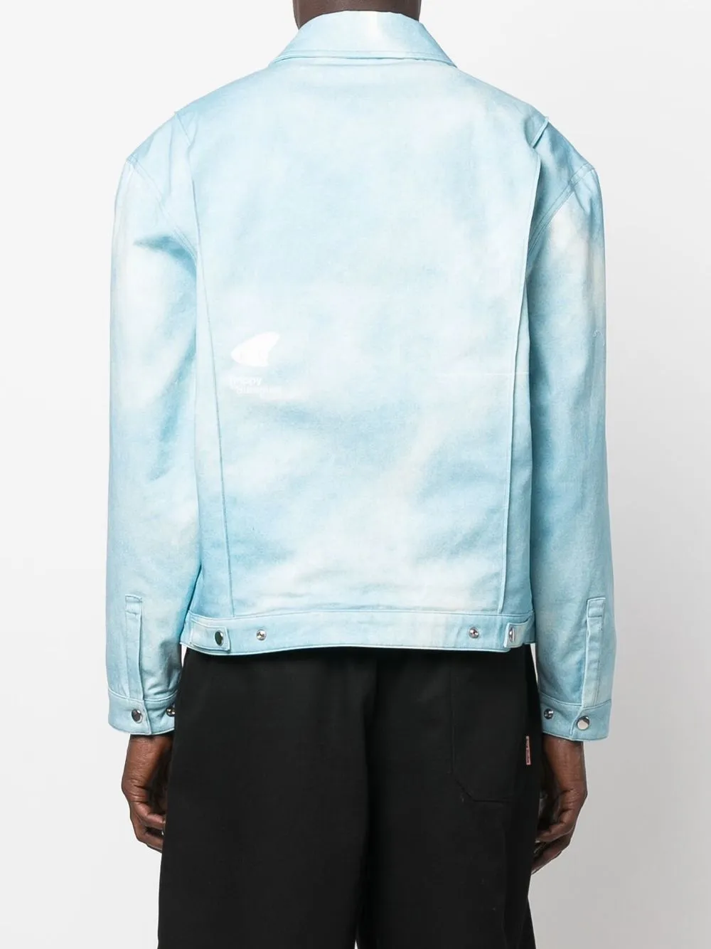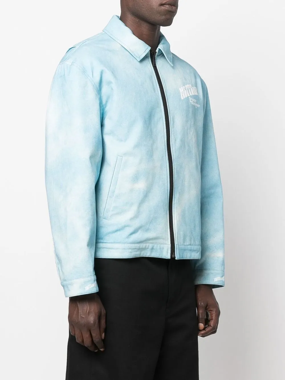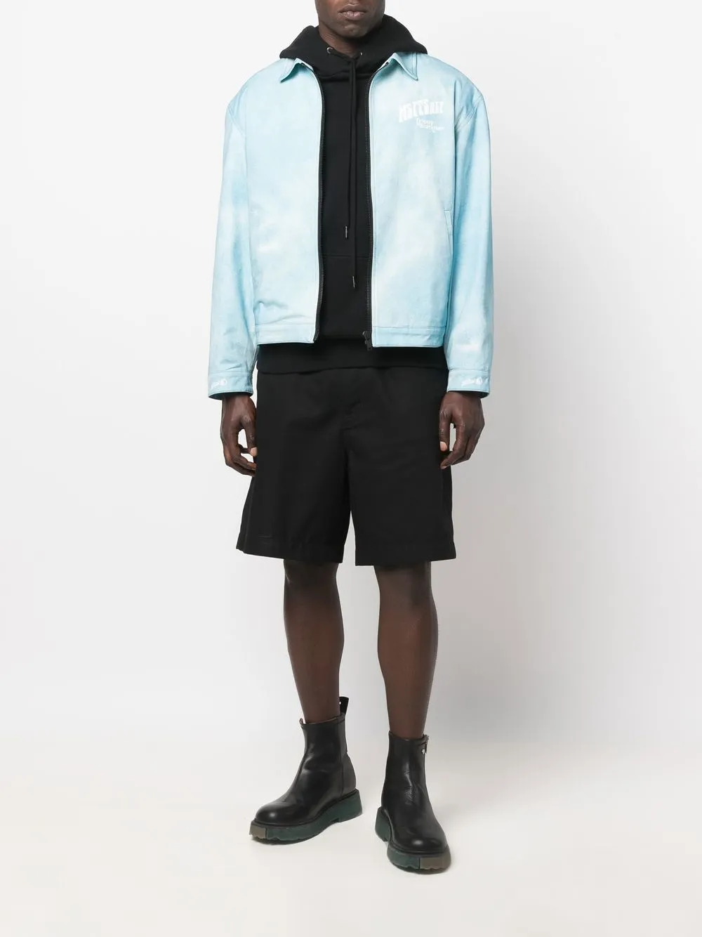 Голубой, хлопок, принт с логотипом на груди, классический воротник, застежка на молнии спереди, длинные рукава и прямой подол.
