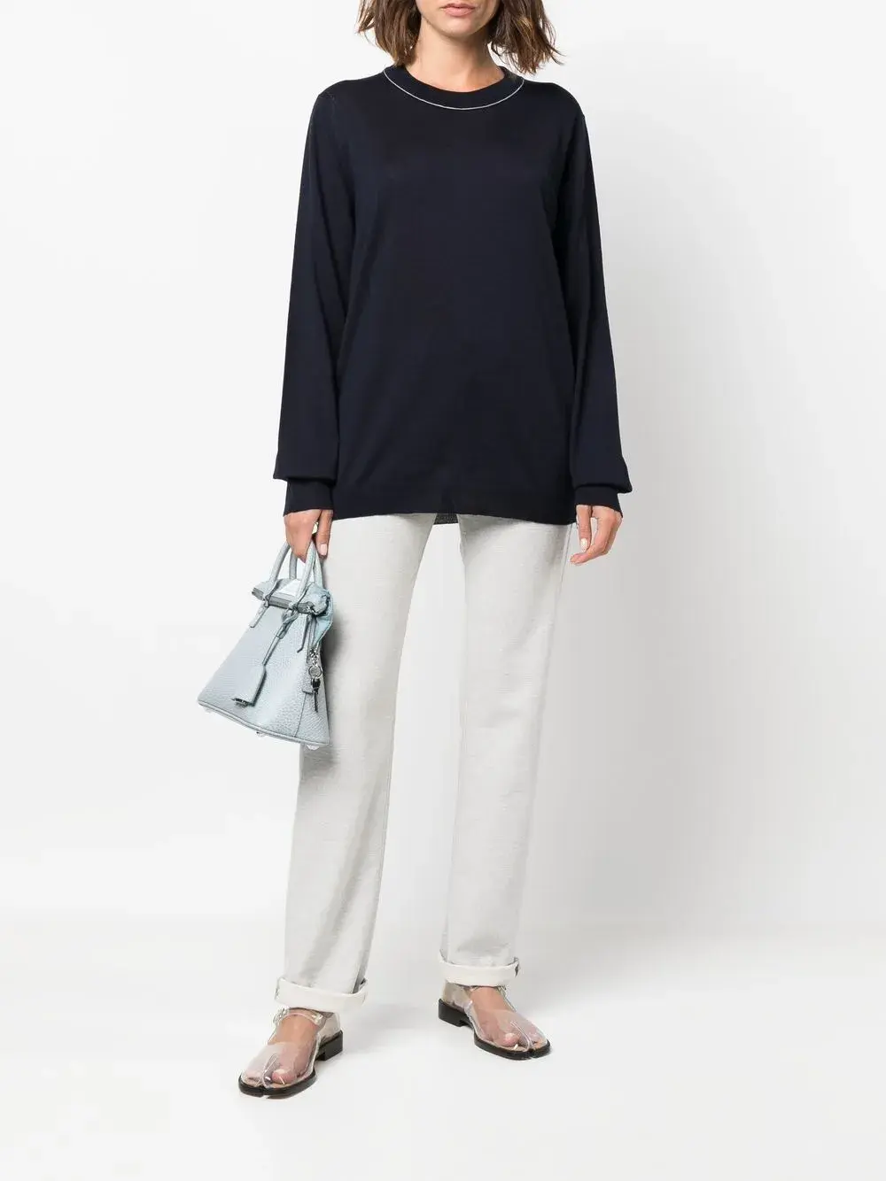 Джемпер с круглым вырезом и декоративной строчкой от Maison Margiela.