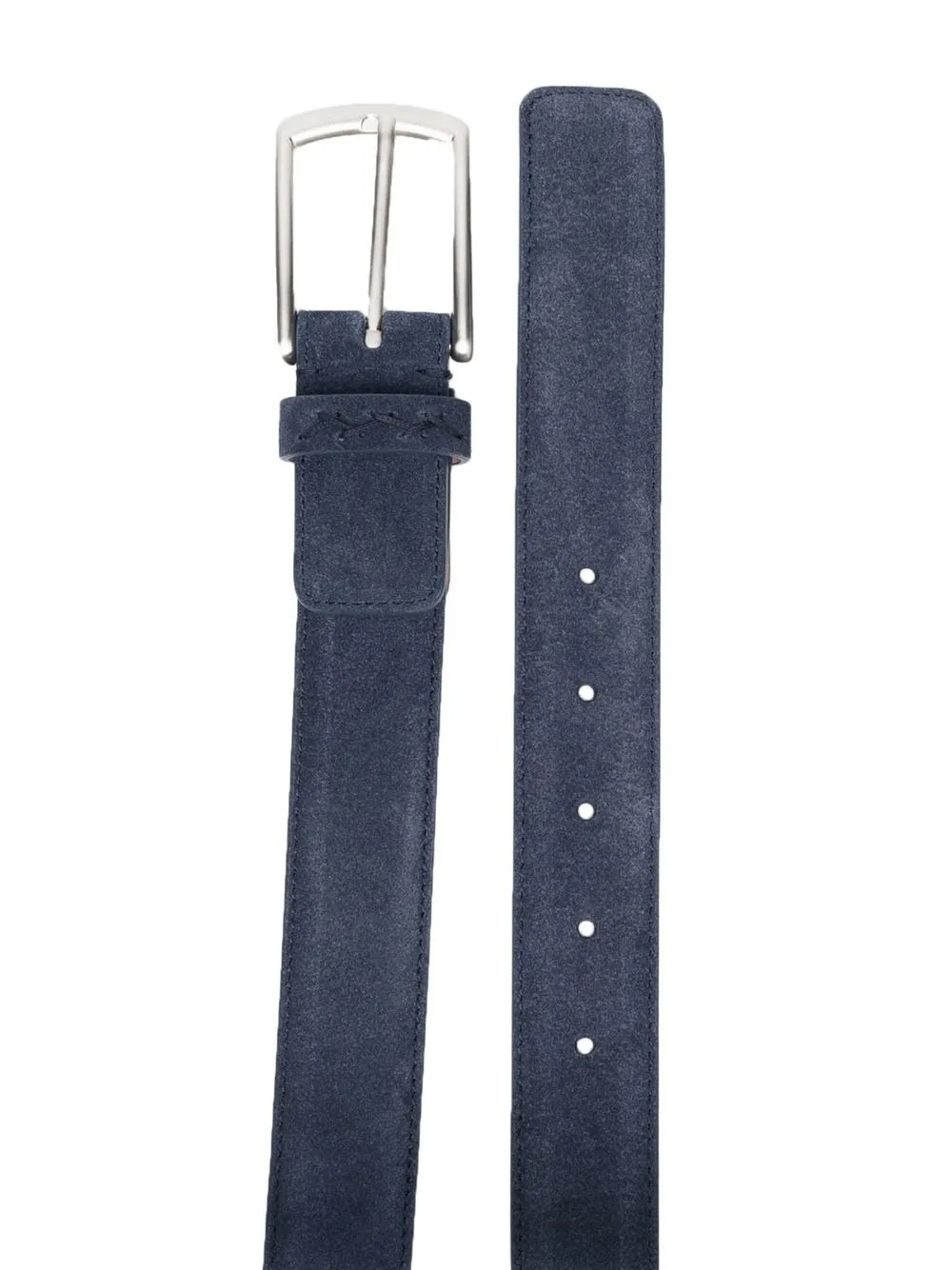 Темно-синий, замша из телячьей кожи, застежка на пряжке и прорезанные отверстия.