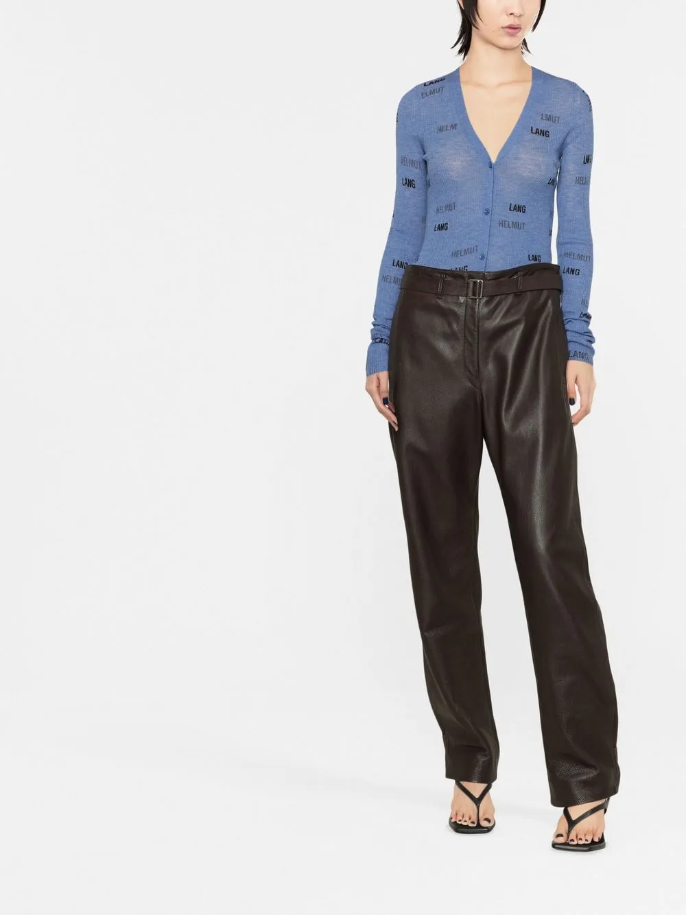 Голубой, шерсть, трикотаж в рубчик, сплошной принт с логотипом, трикотаж в рубчик, V-образный вырез, застежка на пуговицах спереди, длинные рукава и прямой подол.