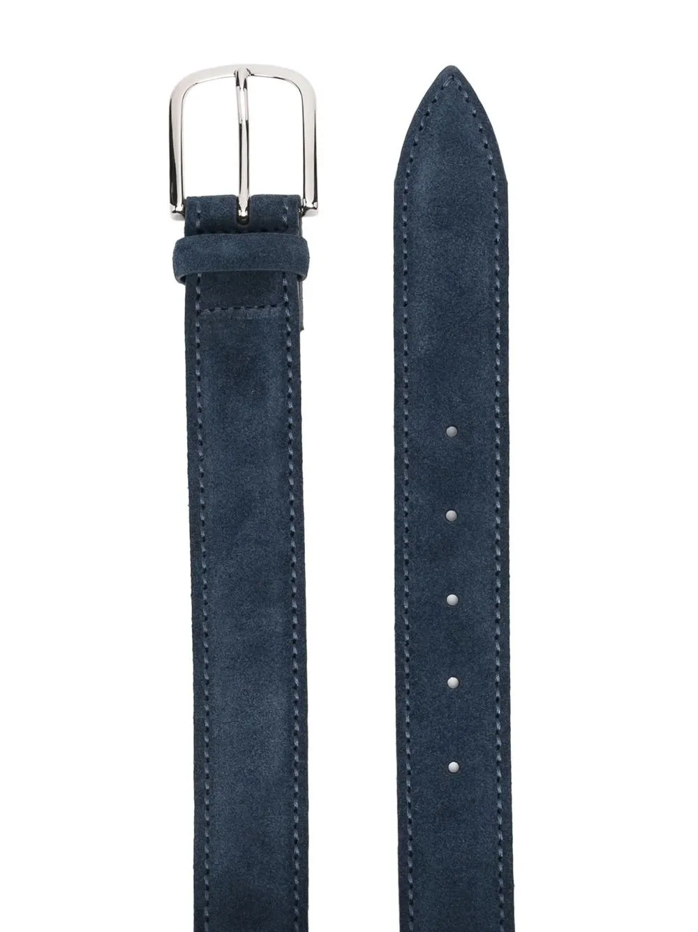 Синий, телячья кожа, застежка на пряжке, прорезанные отверстия и регулируемый дизайн.