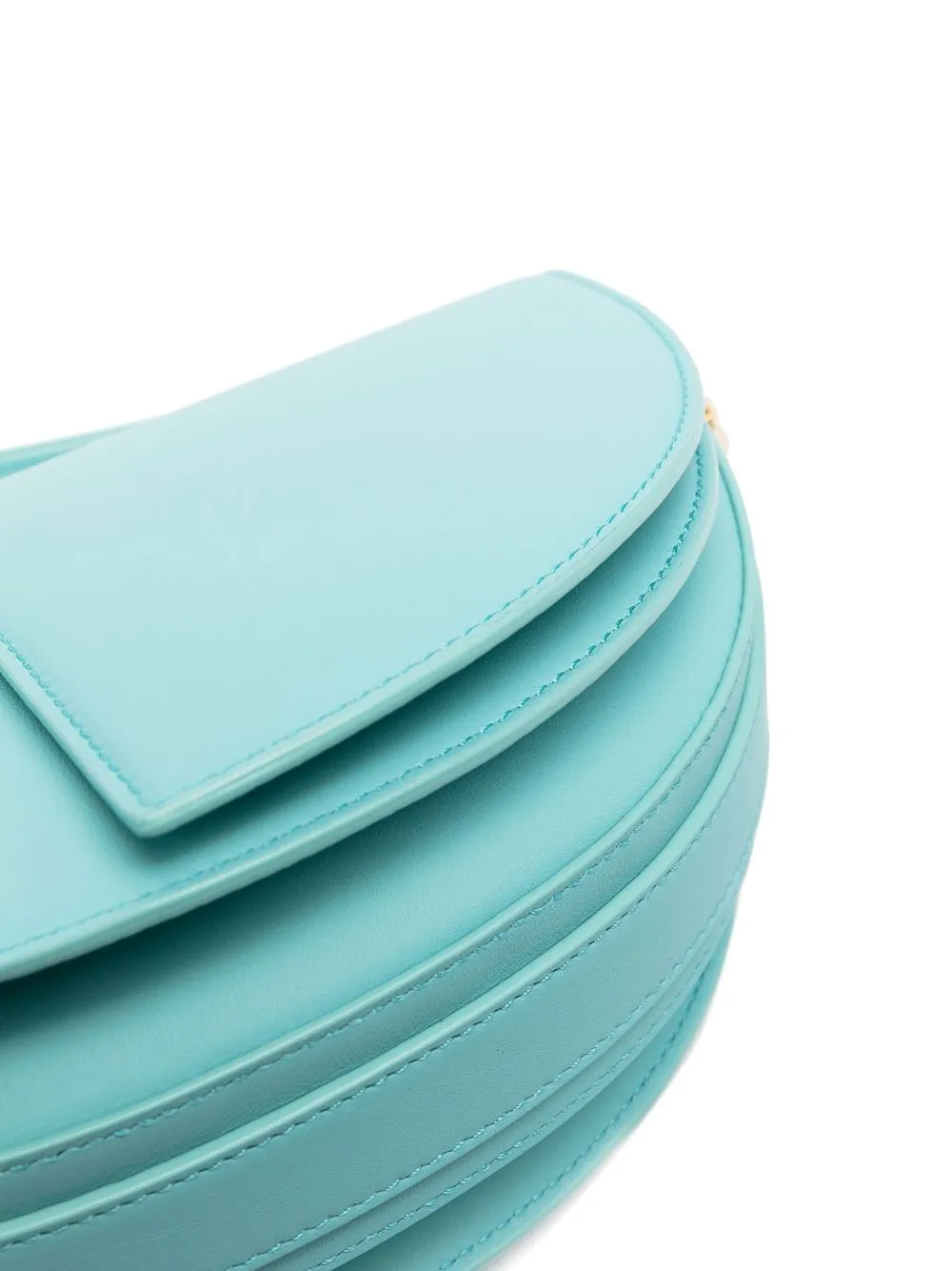 Светло-зеленый, телячья кожа, вставки, откидной клапан, основное отделение, золотистая фурнитура и регулируемый ремень на плечо.