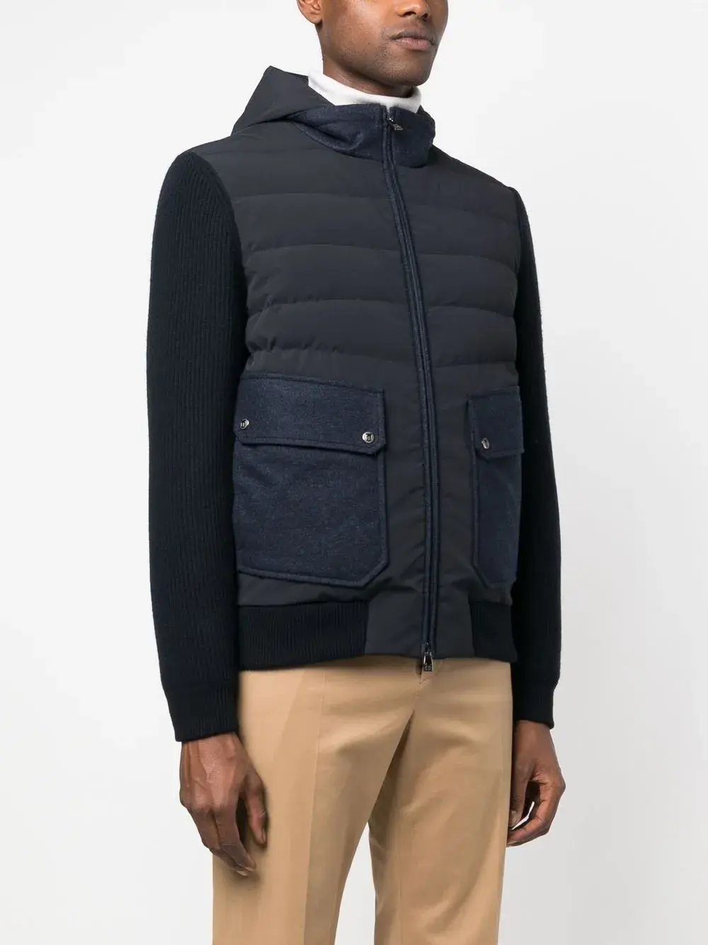 Классический капюшон, застежка на молнии спереди, длинные рукава и два передних кармана с клапанами.
