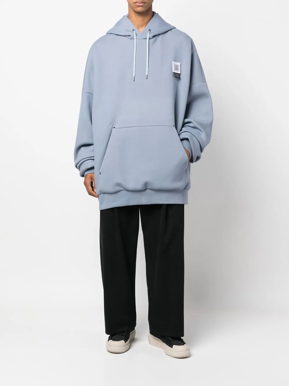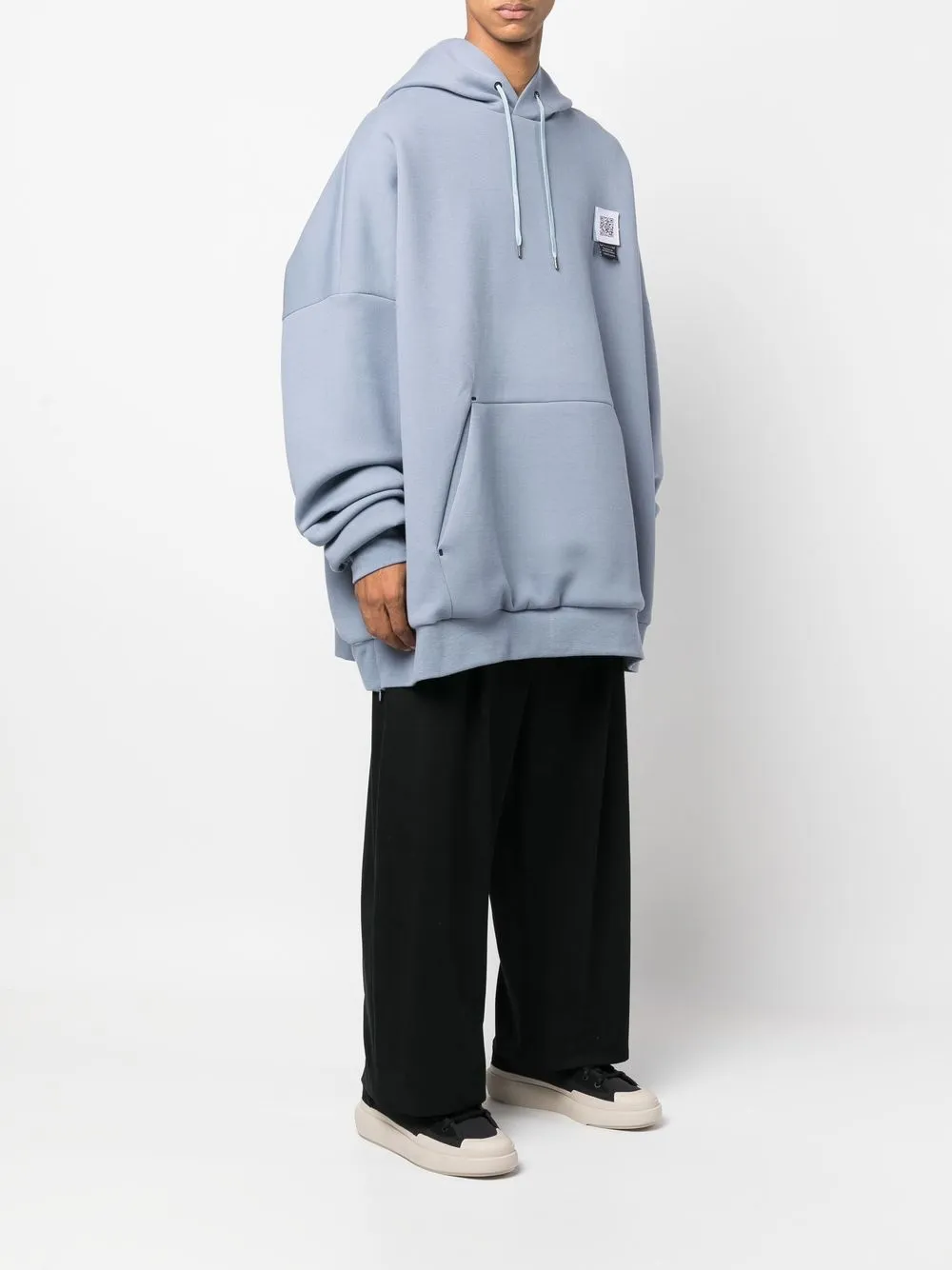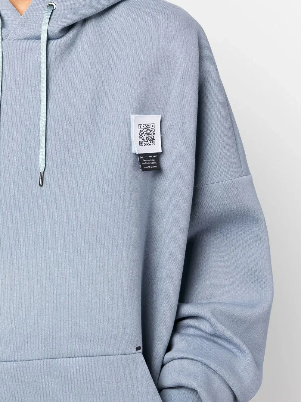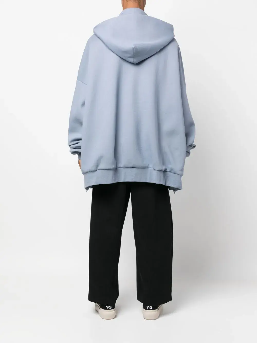 Сине-серый, смесовый хлопок, оправа оверсайз, принт с логотипом на груди, затягивающийся на шнурок капюшон, длинные рукава и прямой подол.