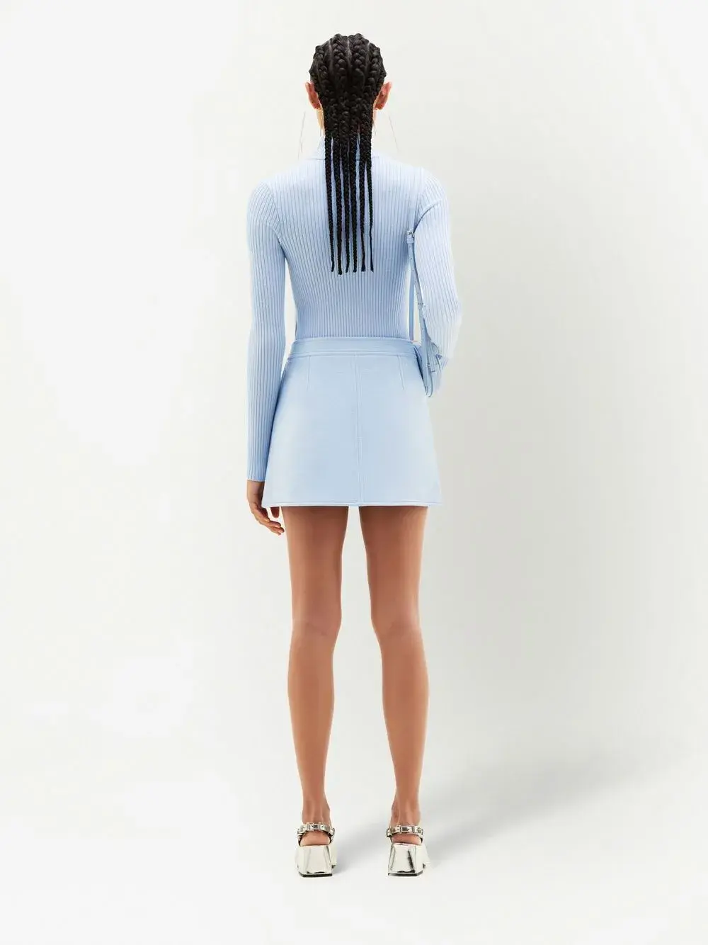 Голубой, трикотаж в рубчик, нашивка с логотипом спереди, высокий воротник, длинные рукава и прямой подол. Ответственный выбор: В состав этого товара входят материалы, сертифицированные организациями Forest Stewardship Council (FSC) или Programme for the Endorsement of Forest Certification (PEFC).