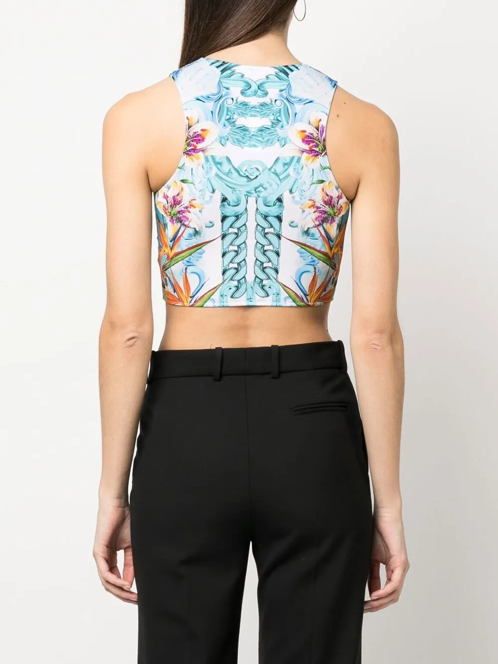 Укороченный топ с гавайским принтом Philipp Plein, синий