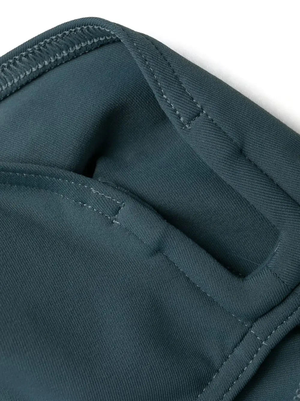 Синий, вырез-петля халтер, треугольная чашка, тонкие бретели и застежка на зажиме сзади.