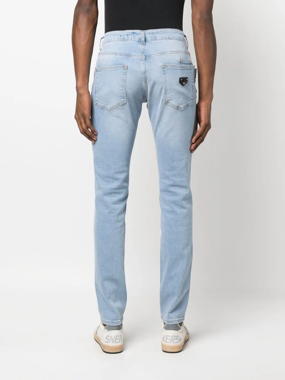 Джинсы Super Straight-cut с эффектом потертости Philipp Plein, синий