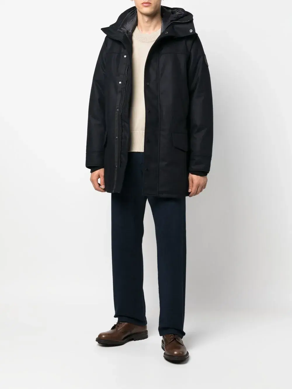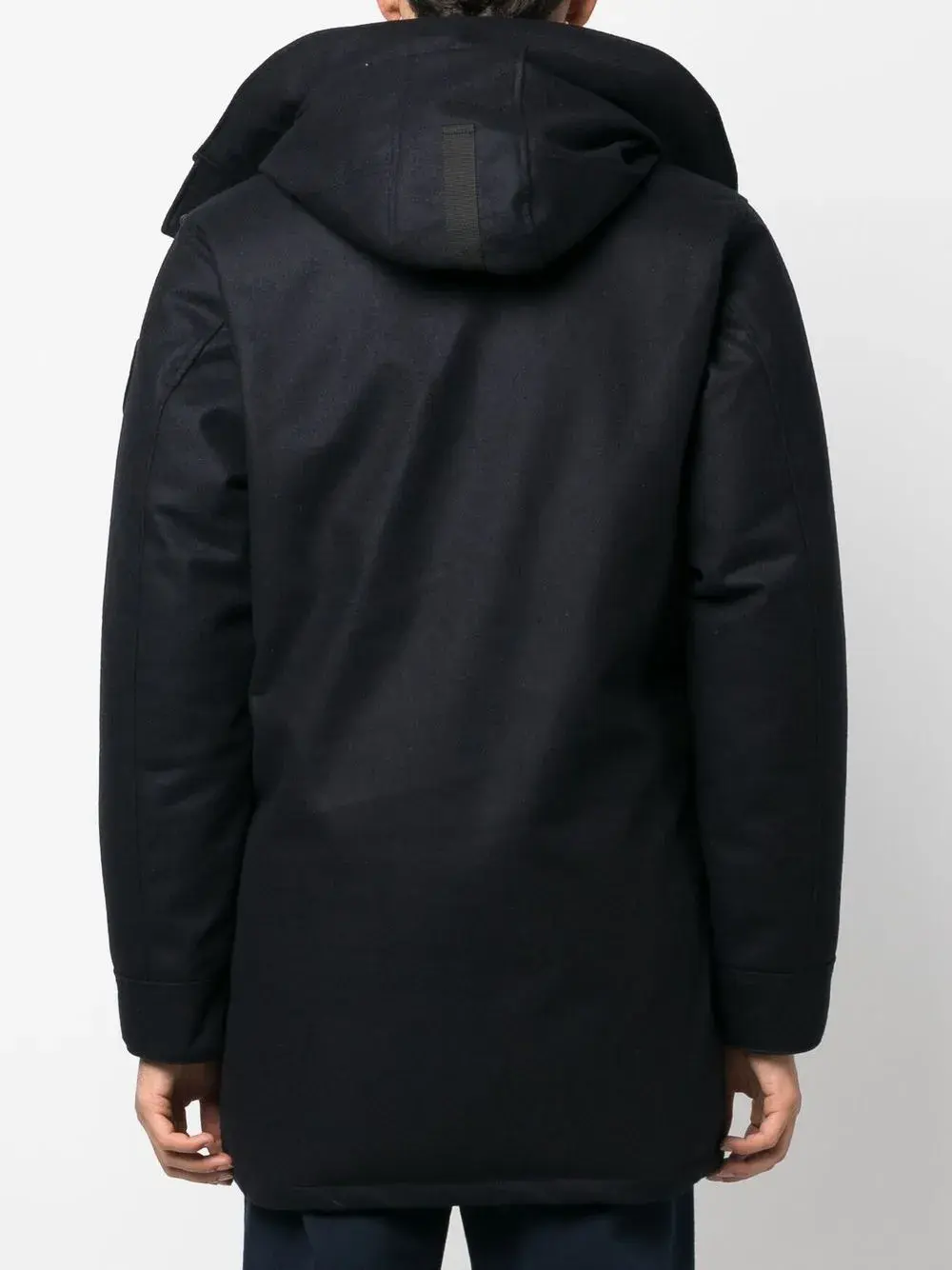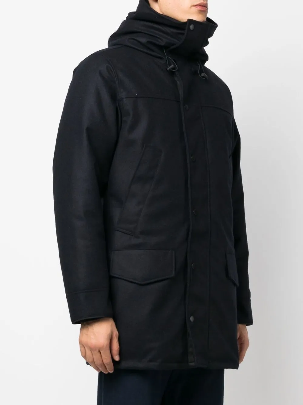 Подробнее о товаре: Переработанная шерсть, наполнитель из пуха и перьев, двусторонний дизайн, нашивка с логотипом на рукаве, застежка на кнопки и молнию спереди, классический капюшон, высокий воротник, два передних кармана с клапанами, длинные рукава и прямой подол. Ответственный выбор: Этот товар как минимум на 50% состоит из переработанных или повторно использованных материалов.