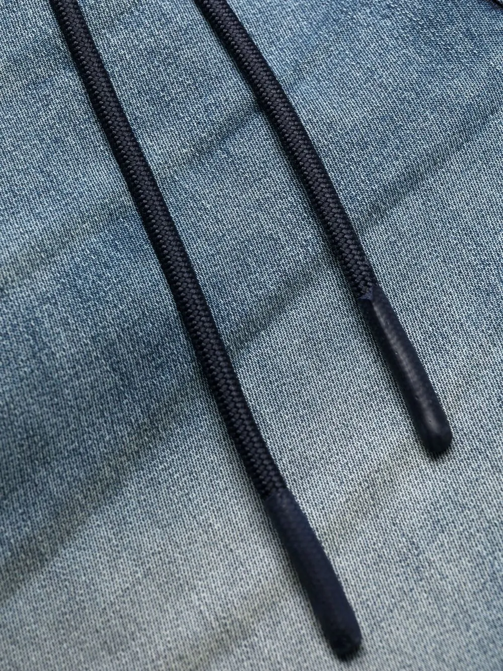 Голубой, декоративные складки, обработанный деним, узкая модель, кулиска на талии, потайная молния спереди и пять карманов. Ответственный выбор: Этот товар как минимум на 50% состоит из материалов, которые признаны более безопасными для окружающей среды или сертифицированы независимыми организациями.