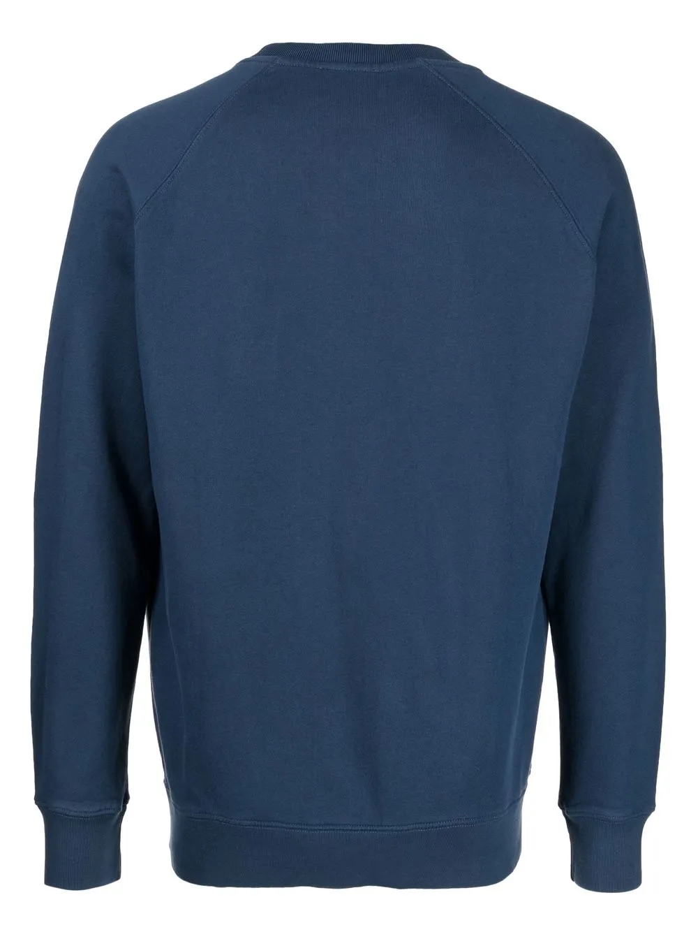 Темно-синий, хлопок, нашивка с логотипом на груди, круглый вырез, длинные рукава и рукава с узкими манжетами.