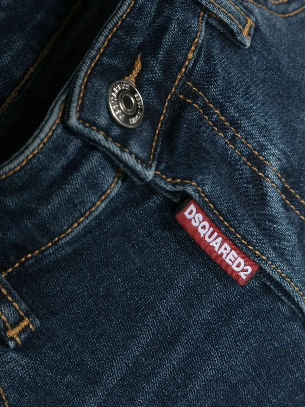 Индиго, смесовый хлопок, бирка с логотипом, средняя посадка, петли для ремня, ширинка на пуговицах, пять карманов, узкий крой и длина выше колена.
