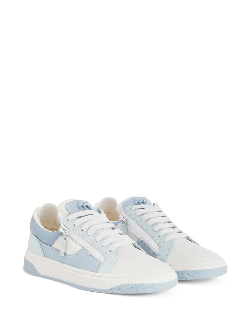 Голубой, кожа, стиль колор-блок, нашивка с логотипом на язычке, шнуровка спереди, закругленный носок и плоская резиновая подошва.