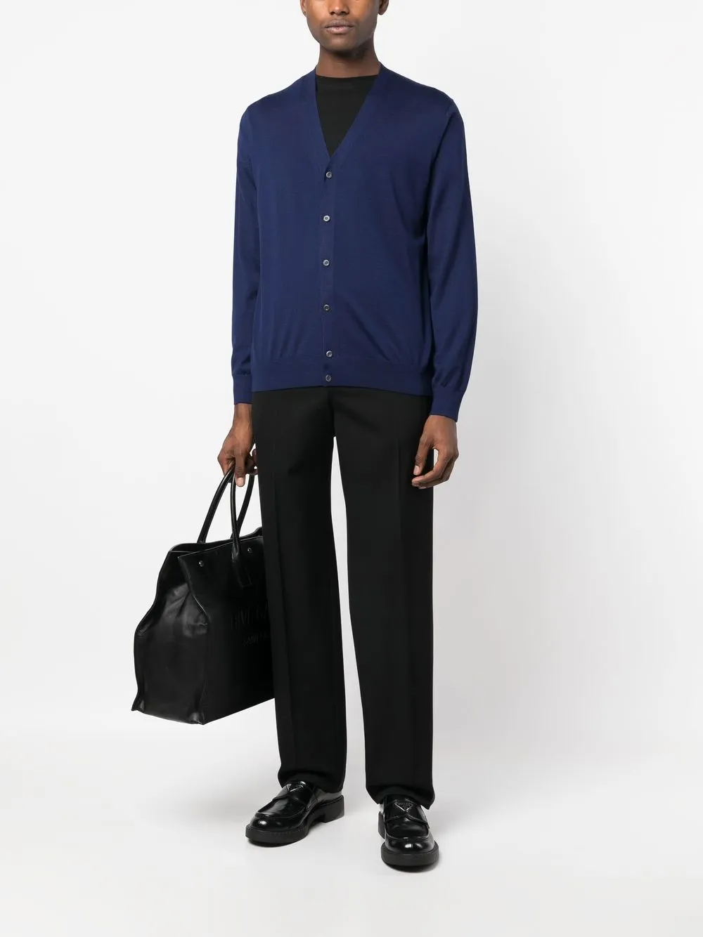 Кардиган тонкой вязки с V-образным вырезом Prada, синий