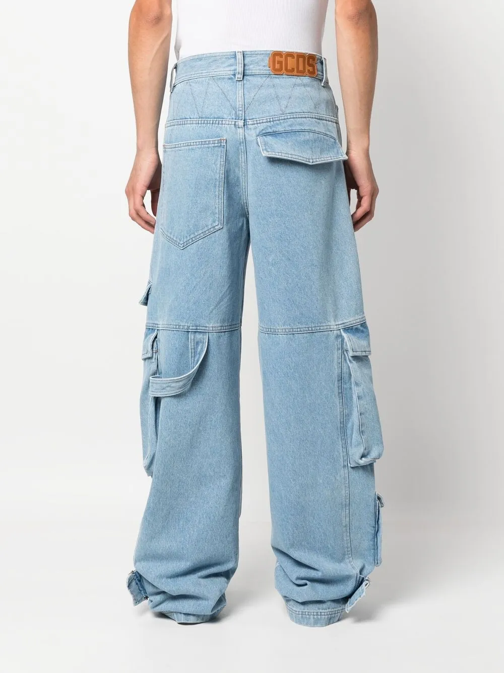 Широкие джинсы с карманами карго GCDS, синий 78 604₽