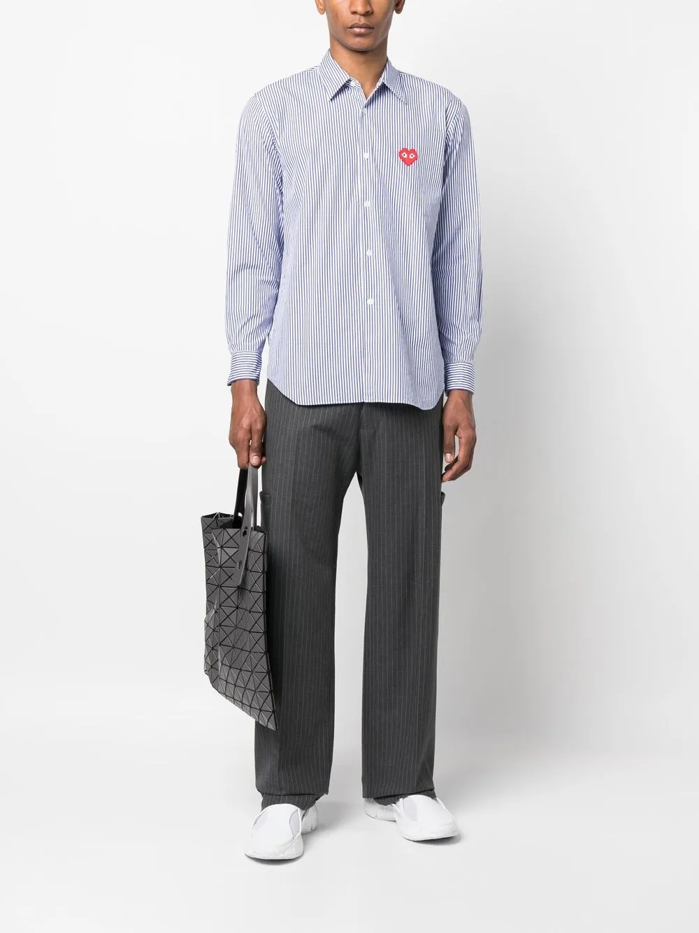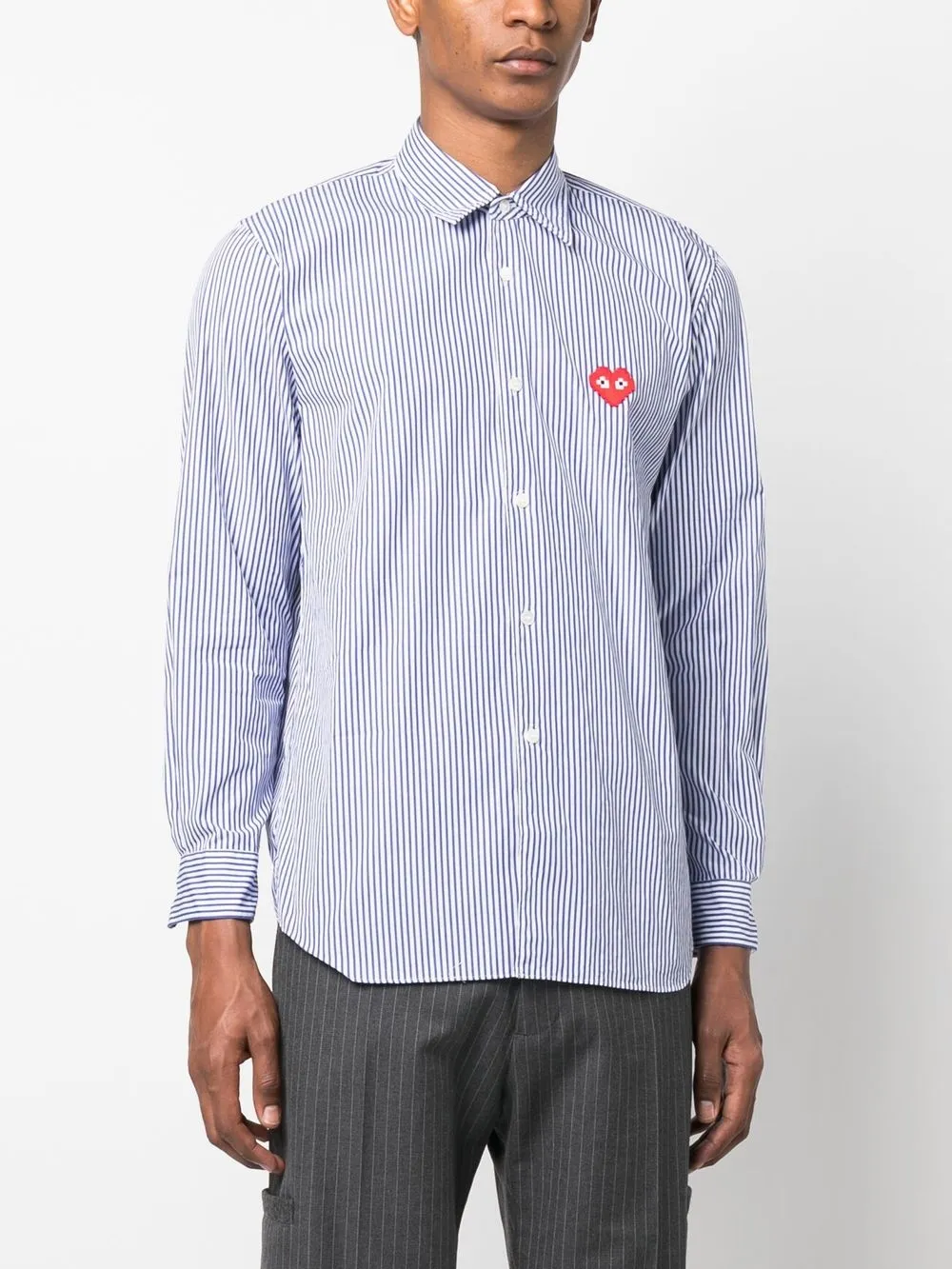 Полосатая рубашка с вышитым логотипом Comme Des Garçons Play, синий 45 821₽