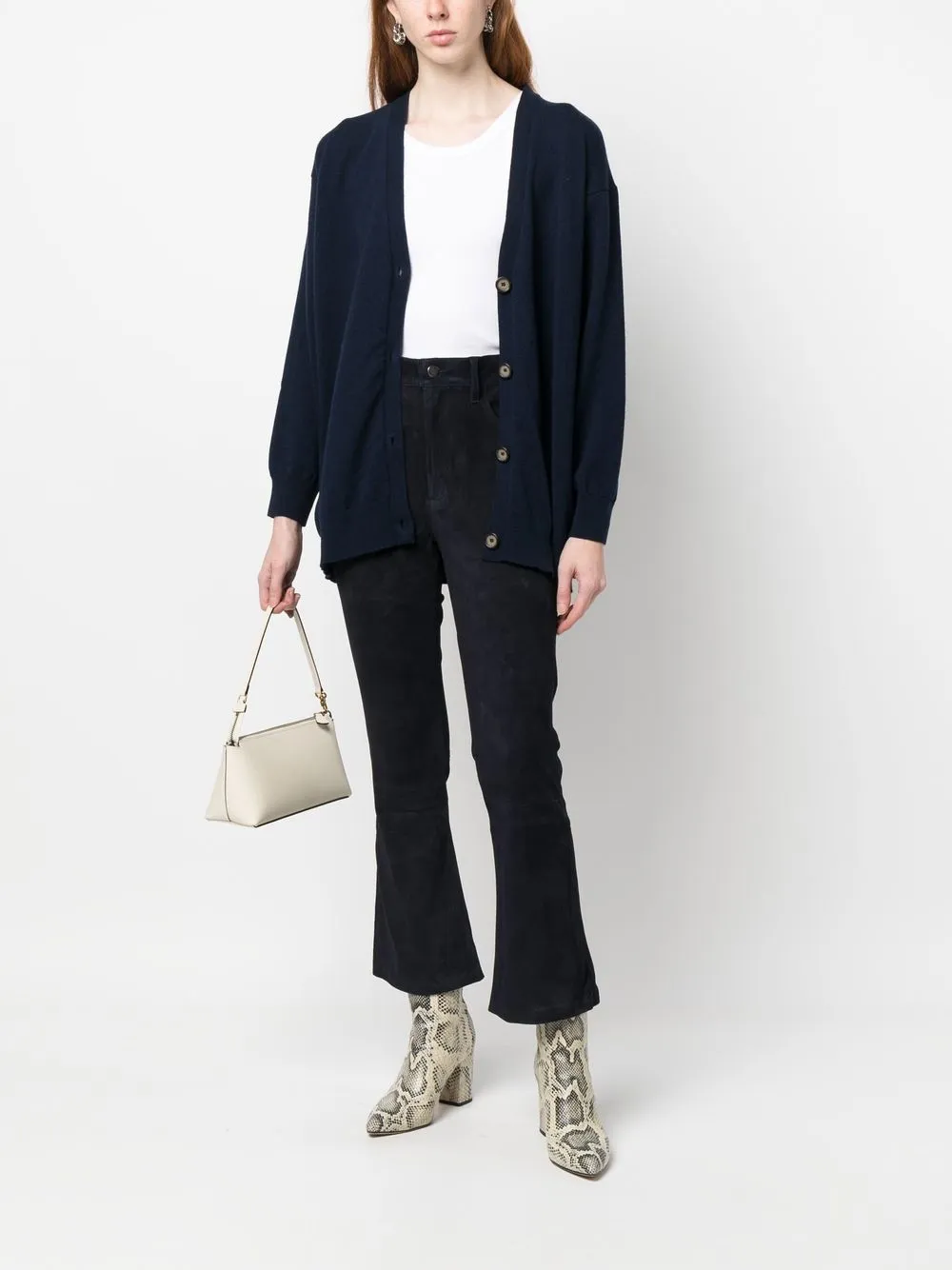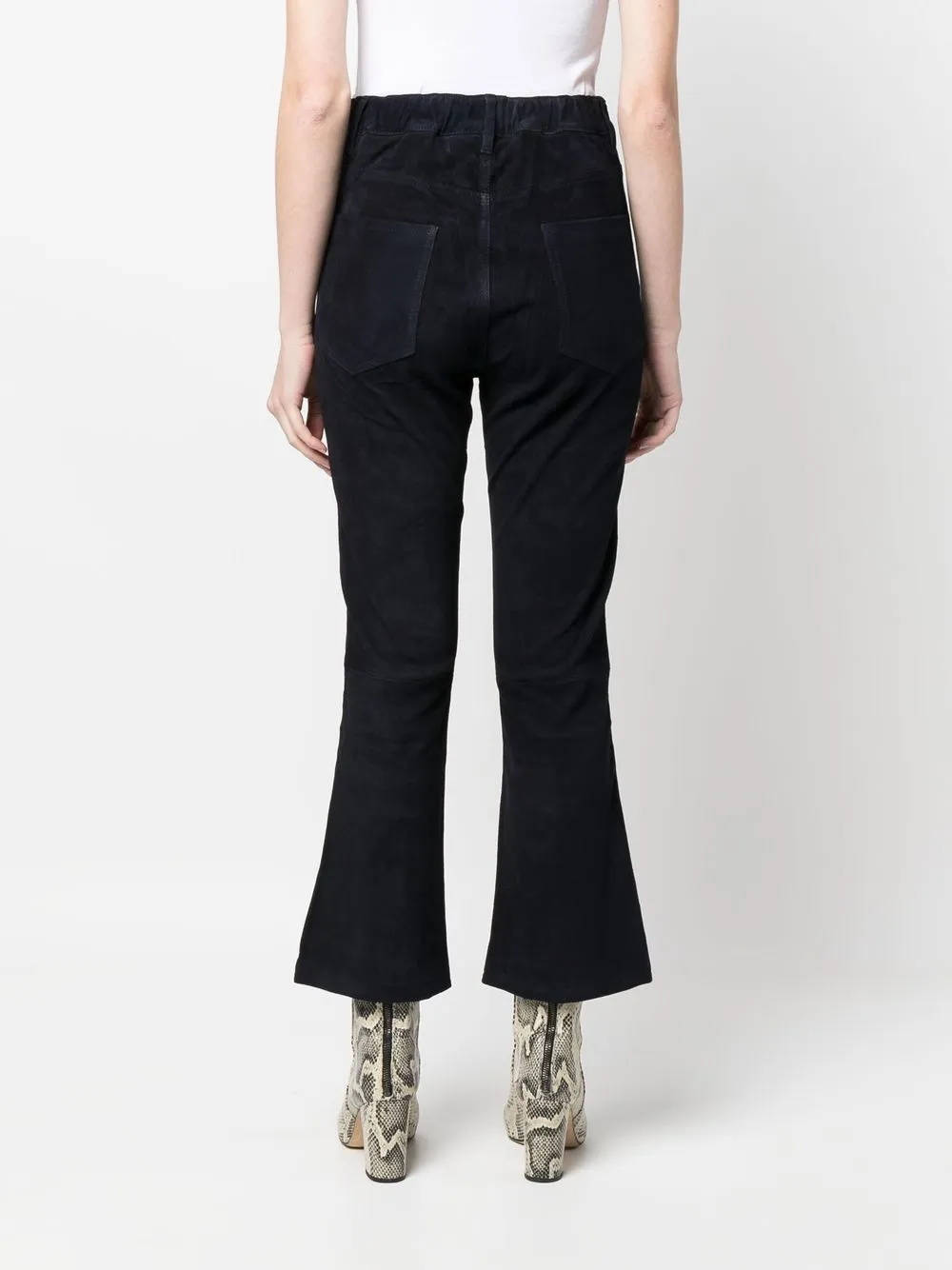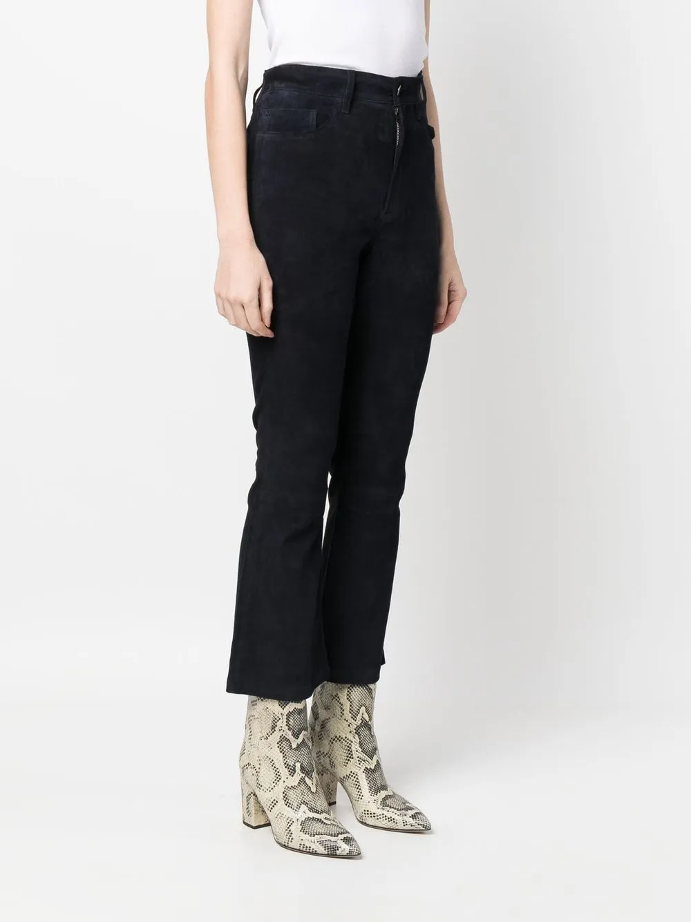 Петли для ремня, эластичный пояс, застежка на пуговицах спереди, пять карманов, узкий крой, расклешенный крой и укороченная длина.