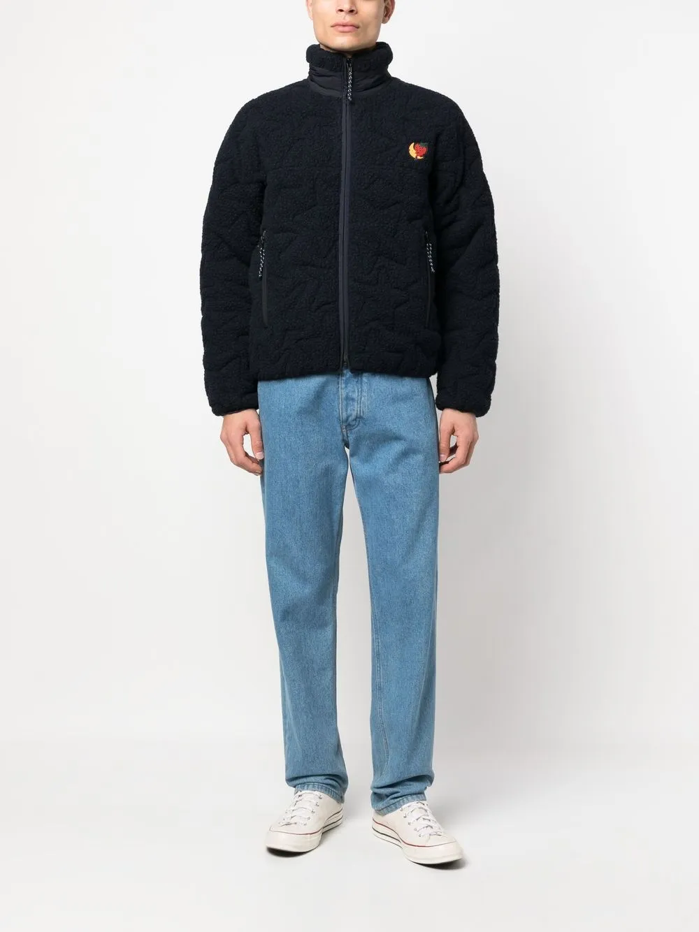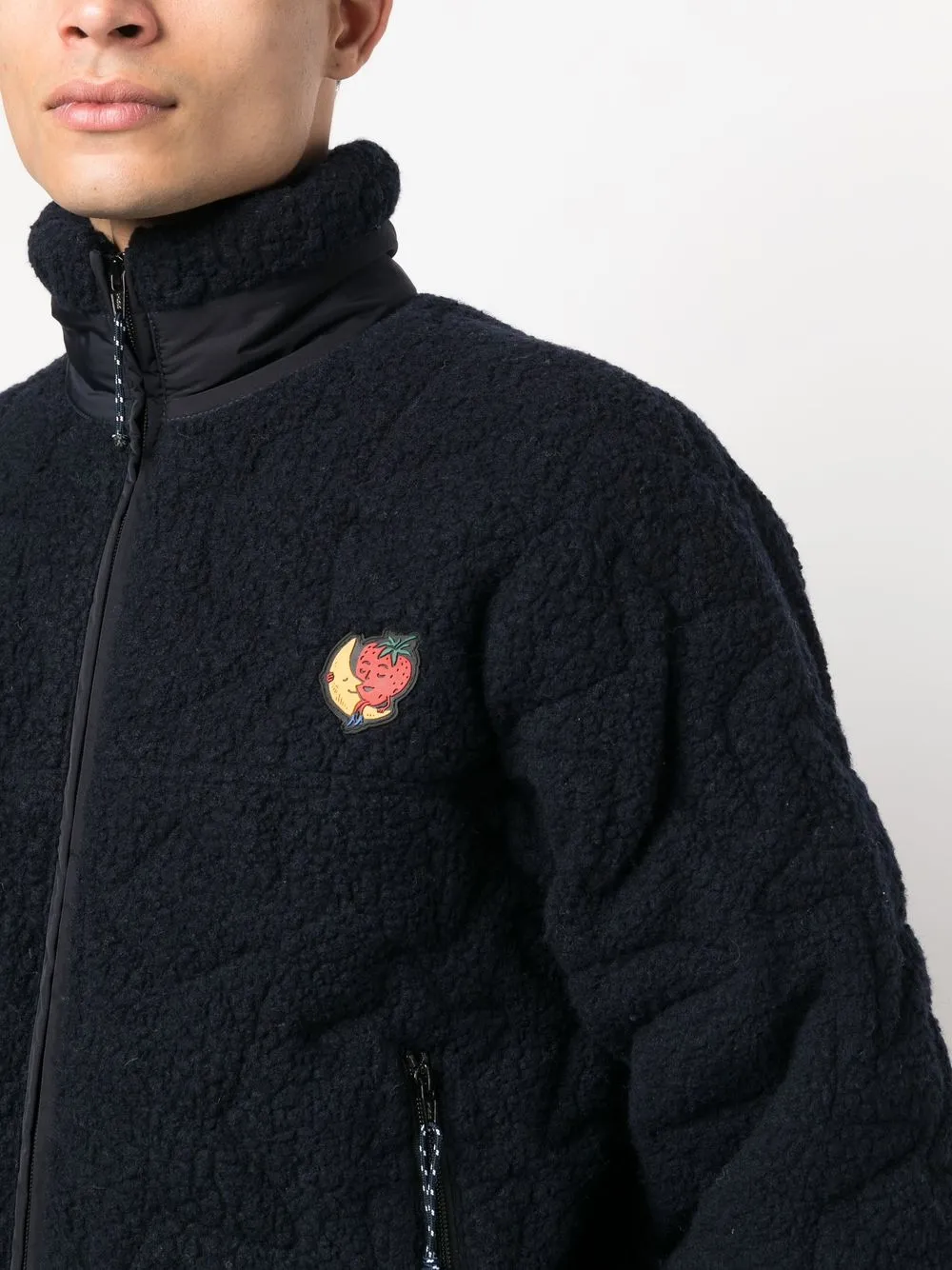 Темно-синий, смесовая переработанная шерсть, стеганая модель, материал c флисовой текстурой, высокий воротник, застежка на молнии спереди, длинные рукава, вышитый логотип на груди, два прорезных кармана по бокам и прямой подол. Ответственный выбор: Этот товар как минимум на 50% состоит из переработанных или повторно использованных материалов. Мы рекомендуем стирать вещи из переработанных синтетических тканей в специальном мешке, чтобы микропластик не попадал в сточные воды.