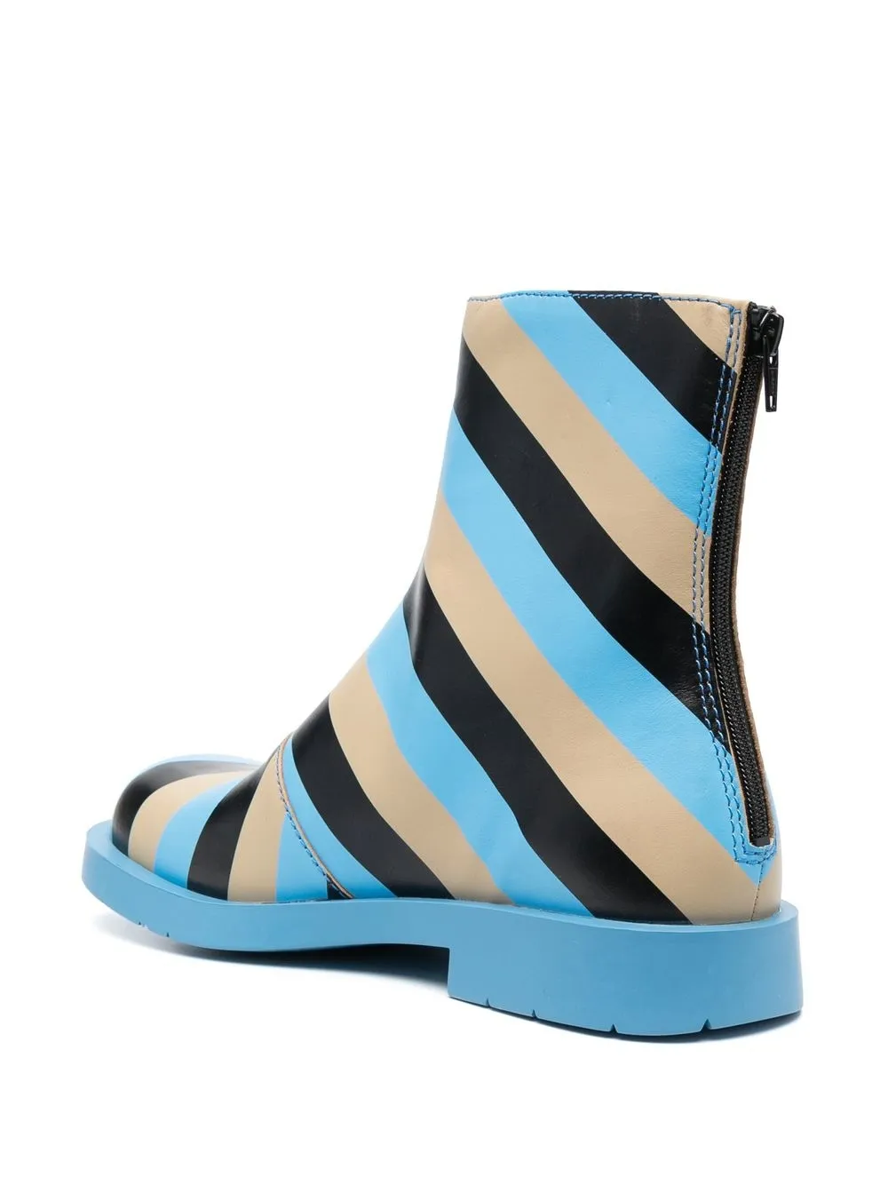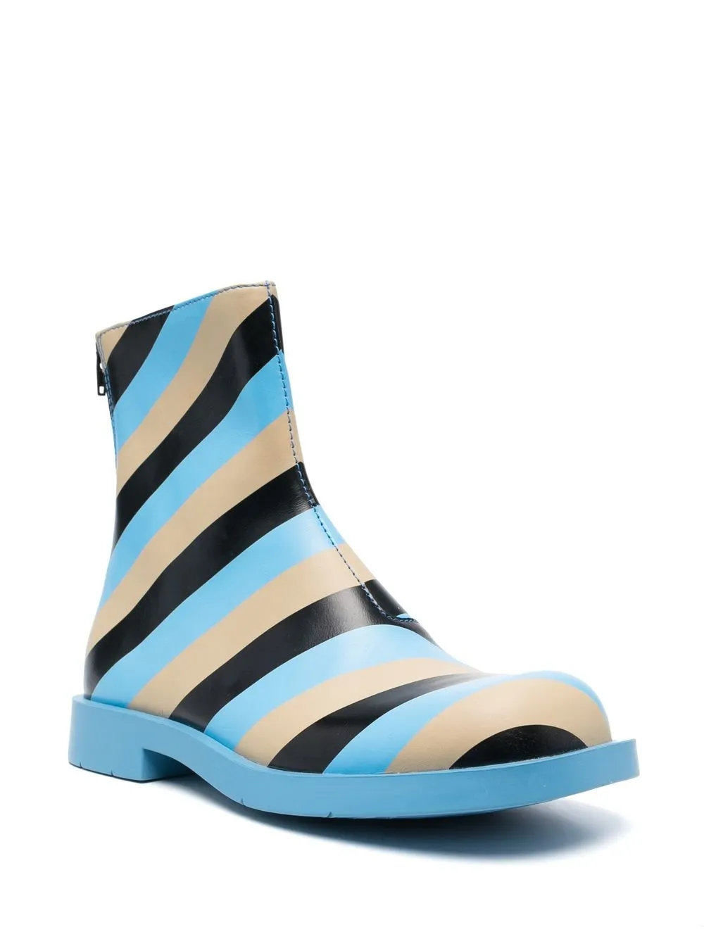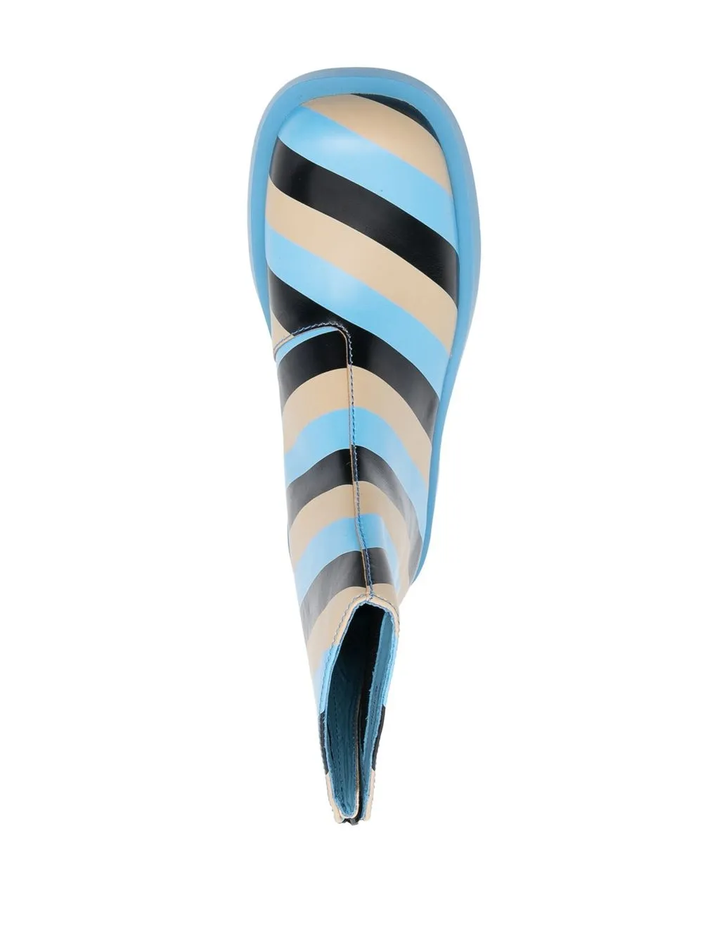 Подробнее о товаре: Нежно-голубой, черный, винтажный бежевый, переработанный полиэстер, принт в диагональную полоску, застежка на молнии сзади, квадратный носок, высота по щиколотку, плоская резиновая подошва и телячья кожа. Кожа в составе этого товара сделана на фабрике, сертифицированной организациями Leather Working Group (LWG) или ICEC. Это гарантирует, что производитель минимизировал негативное влияние материала на окружающую среду. Узнать больше о том, какие товары получают отметку «Ответственный выбор», можно из материала «Как мы оцениваем экологичность и этичность».
