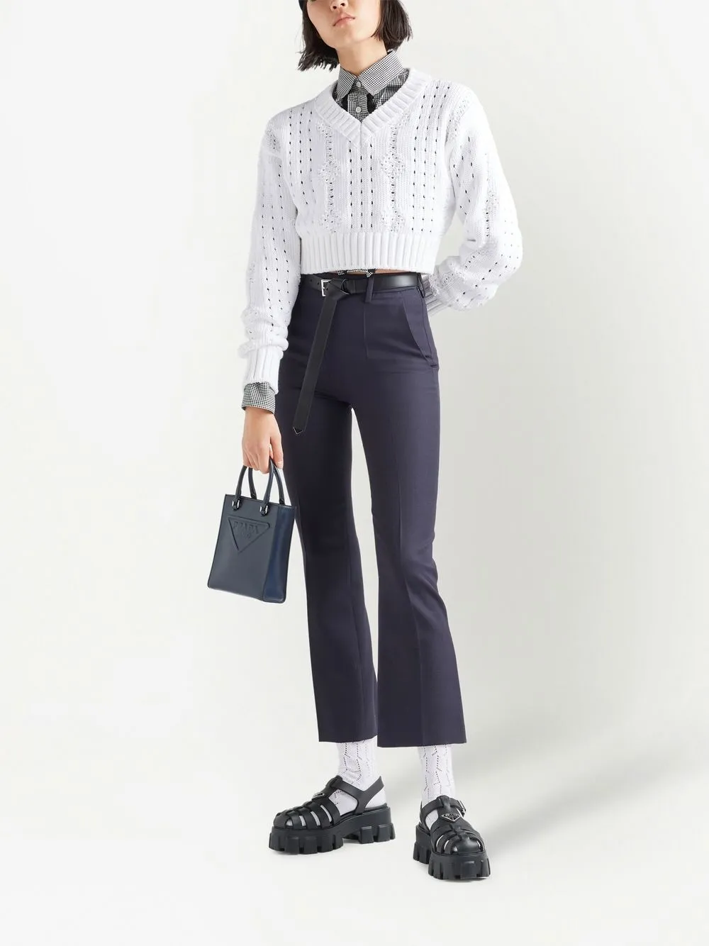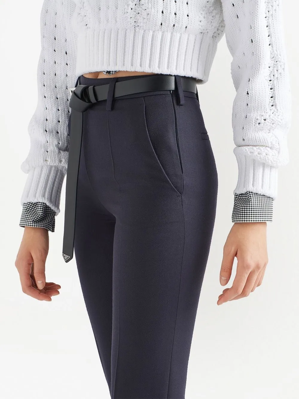 Шерстяные расклешенные брюки Prada, синий 142 893₽