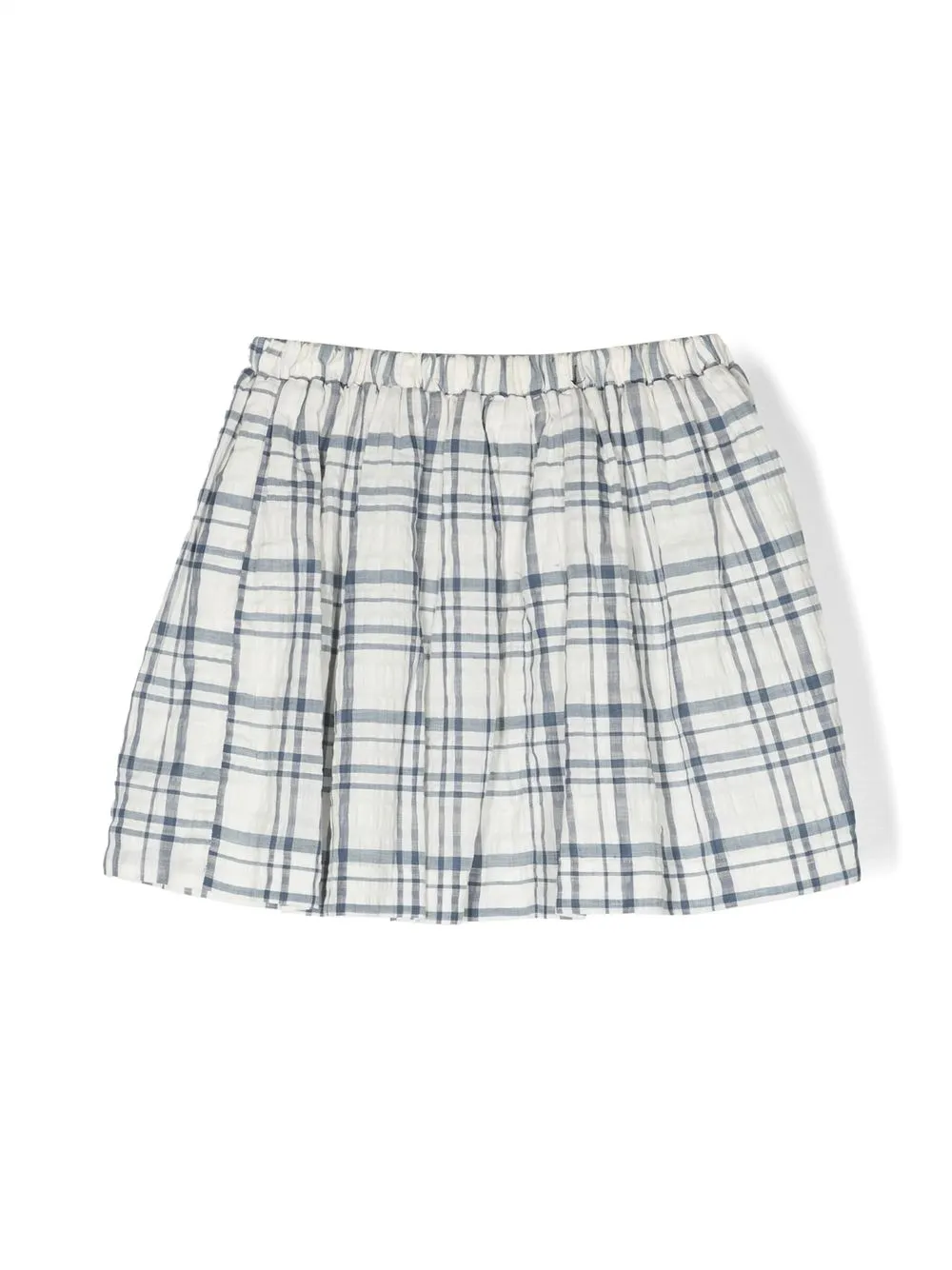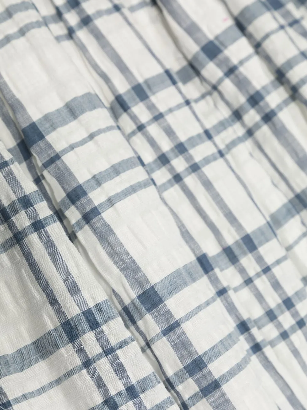 Голубой, сине-серый, смесь хлопка и льна, клетчатый узор, эластичный пояс и прямой подол. Ответственный выбор: Этот товар как минимум на 50% состоит из материалов, которые признаны более безопасными для окружающей среды или сертифицированы независимыми организациями.