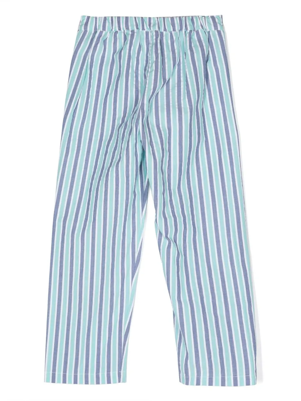 Синий, зеленый, хлопок, узор в вертикальную полоску, вставка из эластичной ленты, застежка на пуговицы и прямой крой.