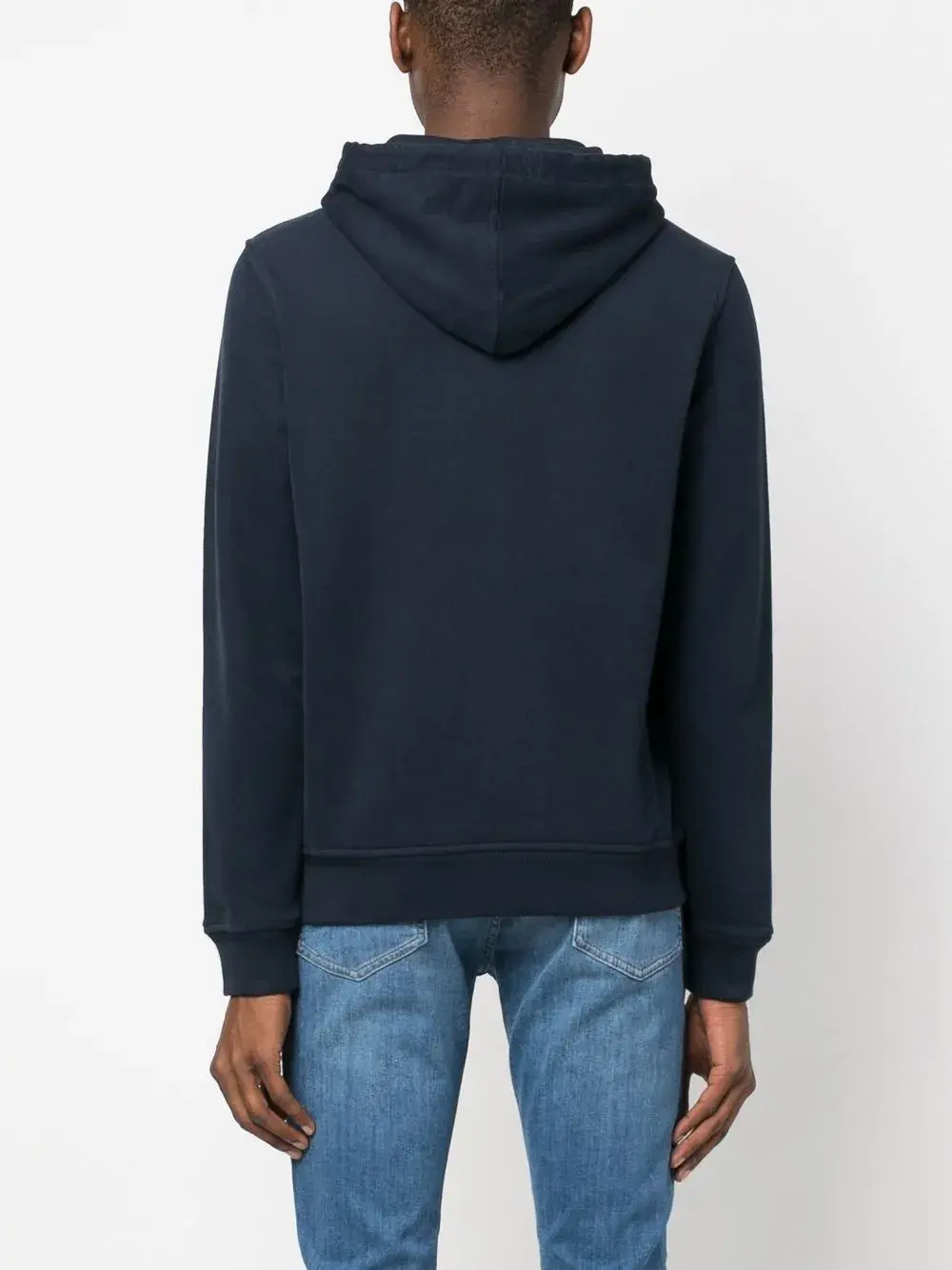 Темно-синий, хлопок, нашивка с логотипом на груди, затягивающийся на шнурок капюшон, длинные рукава, карман-муфта, эластичные манжеты и эластичный подол.