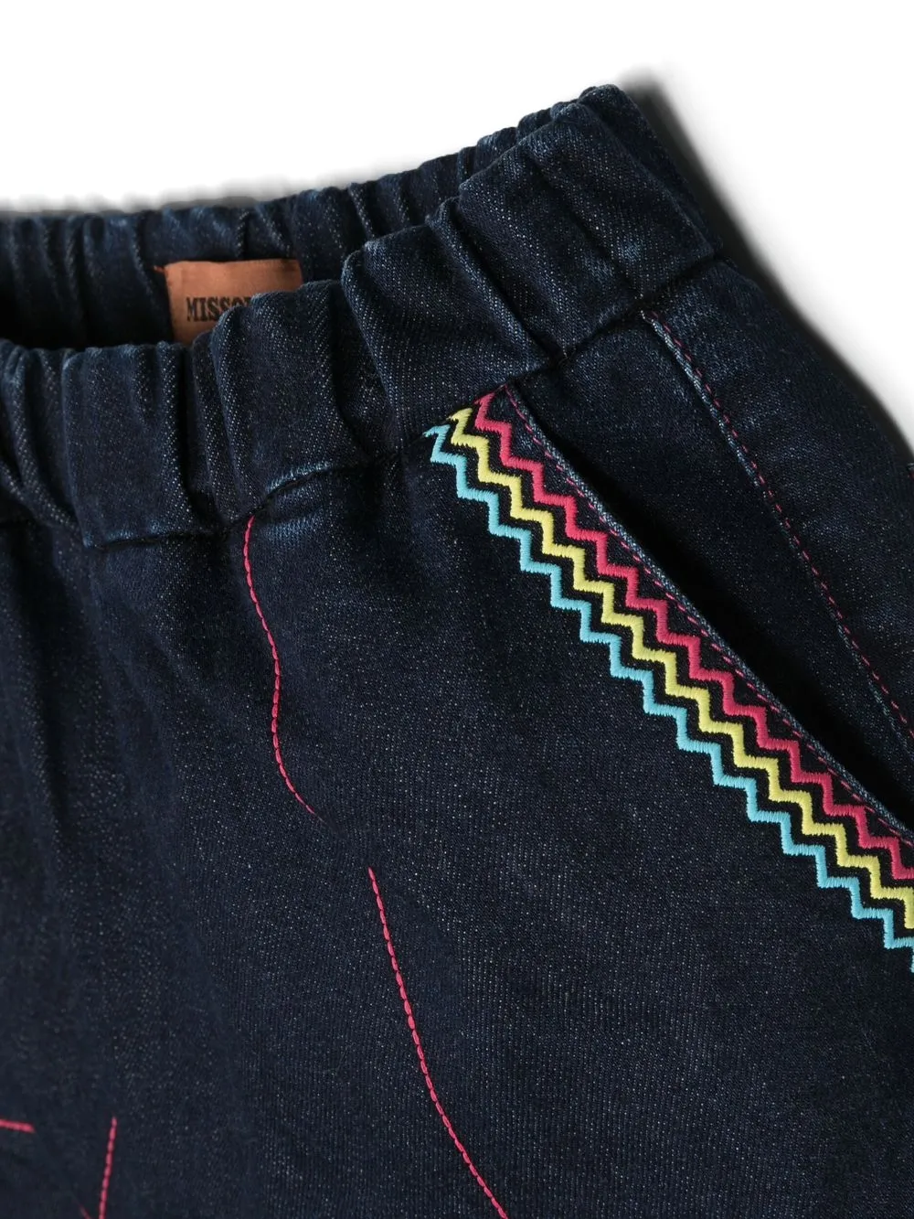 Синий, разноцветный, эластичный хлопок, зигзагообразная вышивка, эластичный пояс, два прорезных кармана по бокам и два накладных кармана сзади. Эта модель, как и другие вещи Missoni, выполнена вручную, поэтому товар может незначительно отличаться от фотографий на сайте.