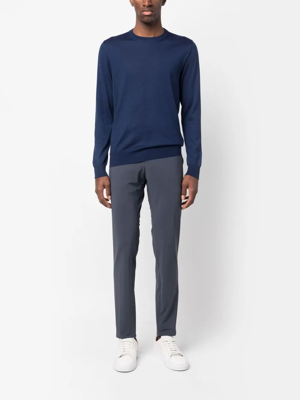 Джемпер с круглым вырезом в рубчик Fedeli, синий