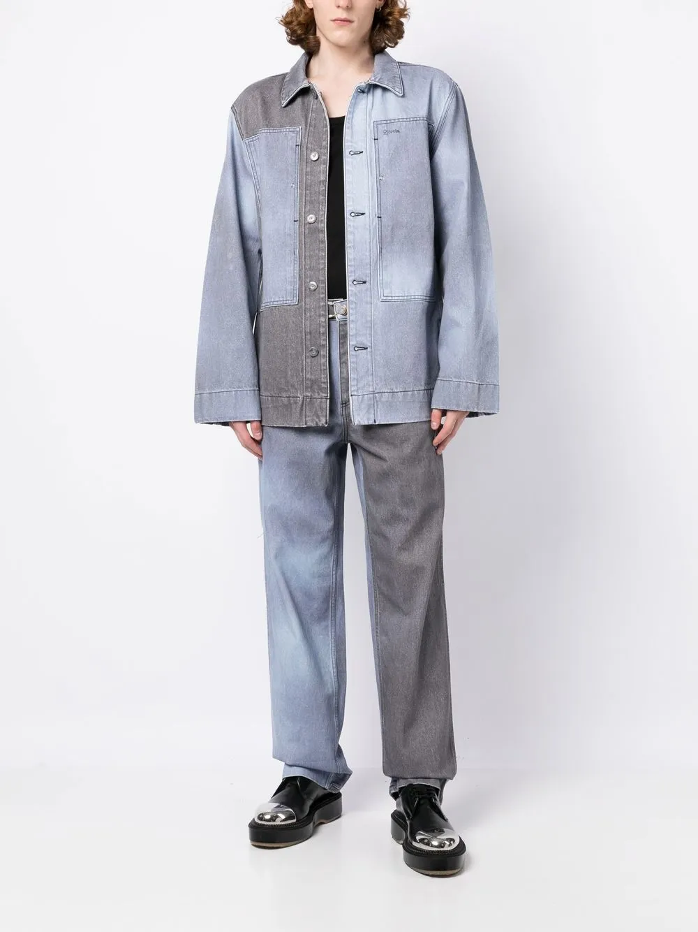Джинсовая куртка-рубашка в двух тонах OBJECTS IV LIFE, синий