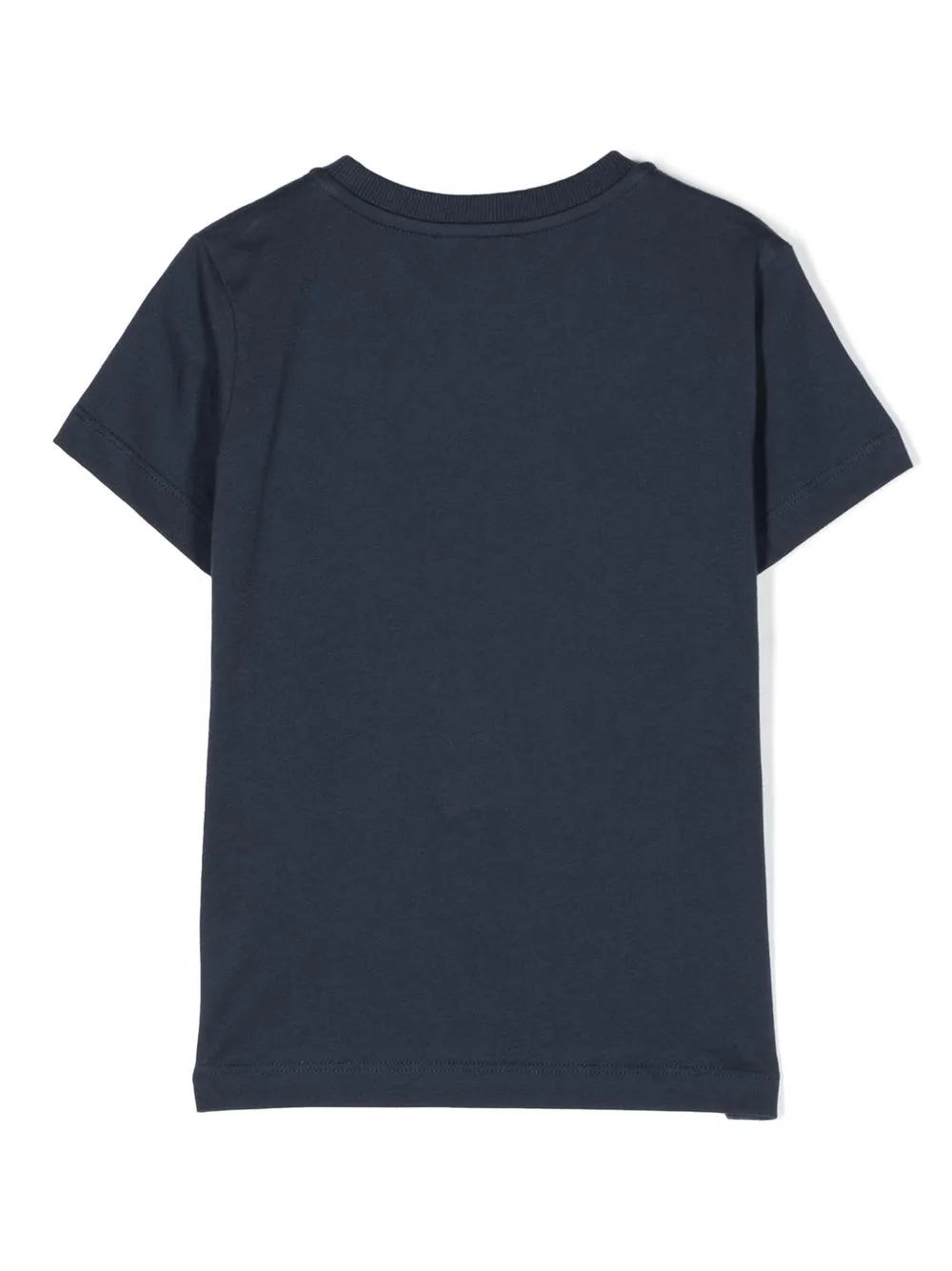 Темно-синий, хлопок, декор Teddy Bear, графичный принт спереди, круглый вырез, короткие рукава и прямой подол.
